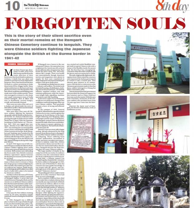 印度主流英文媒體「政治家日報」(The Statesman)本(107)年5月13日以彩色、全頁篇幅詳細報導國軍蘭伽公墓的歷史。