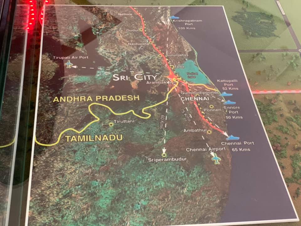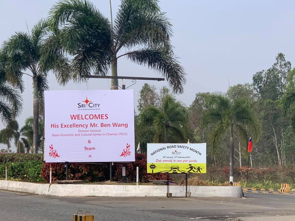 駐清奈辦事處王處長北平偕鄭副參事素賢、金副參事玉琪、貿協新任李經理奕霖於2月18日上午獲邀參訪位於南印度AP州之SRI CITY工業區,受到SRI CITY工業區主席Ramesh Subramanium熱烈歡迎。S主席親自導覽介紹該園區:http://www.sricity.in/en/why-sri-city/ ,目前除臺資富士康已進駐之外,亦有來自日、韓、美等國一百多家企業設廠,號稱南印度最大工業園區,佔地7500英畝,距離清奈2小時車程,亦近鄰清奈港口及機場,交通便捷。
