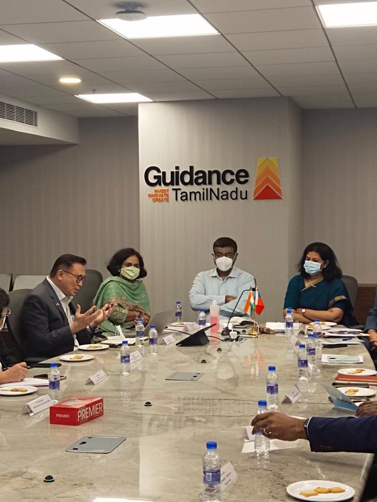 駐清奈辦事處王處長北平於本(111)年2月16日獲邀參加泰米爾那都(TN)州政府投資貿易局舉辦之促進臺資企業來TN州經貿投資合作圓桌會議。