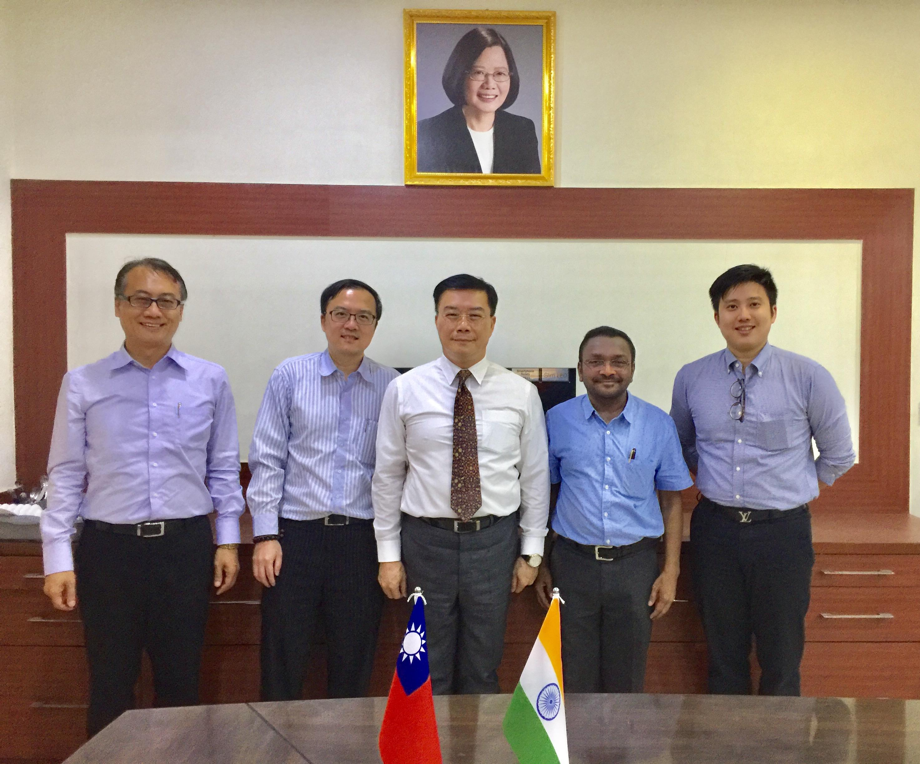 財團法人資訊工業策進會國際處台印智慧城市國際專案顧問何明豐博士、副管理師張紀倫與該會駐清奈辦事處副主任Mr. Sumit Bothra及台灣積體電路(IC)設計自動化軟體廠商安仲科技陳華人經理於2017年9月18日來處拜會李朝成處長,洽談有關推動新南向政策下,台灣半導體產業廠商爭取與印度合作之商機布局。 何明豐博士表示,台灣廠商對印度市場的潛力日益關注,目前想透過財團法人資訊工業策進會國際處台印產業合作平台積極尋找印度深度交流的台灣廠商日益增加。此次台灣積體電路設計自動化產業自主品牌安仲科技挾其與台灣半導體、面板以及封裝產業在台群聚深度合作之自動化及客製化利基所開發的產品,及早布局印度市場,特地前來與印度各知名大學及培訓機構展開一連串之合作洽談,顯見台灣高科技產業日益注重印度市場之發展潛力,有遠見之廠商積極尋找各級政府單位、法人機構的常設性台印溝通合作平台積極蒐集印度市場資訊,並借力使力加快在印度搶佔先機的「彎道超車」布局策略。 台灣技術自主且擁有自有品牌之積體電路設計自動化軟體廠商安仲科技陳華人經理表示,感謝資策會台印度產業合作平台的協助才得以有管道布局印度市場。安仲科技與國際電子設計自動化(Electronic Design Automation, EDA)軟體廠商如 Cadence、Synopsys在台灣及世界各半導體市場各占有一席之地,三家公司皆重視印度市場的潛力,全球IC設計產業的許多人才都是印度人,相信日後印度本土將是全球IC設計產業的沃土。今日早上由資策會協助與IIT Madras 的合作洽談,該校教授們對安仲科技提供的軟體自動化、客製化程度超越Cadence、Synopsys之處印象深刻,將會大力推廣其印度IC設計人才使用安仲科技軟體。基於安仲科技與IIT Madras都與資策會已簽訂有合作備忘錄,彼此是緊密的合作夥伴,因此安仲科技將贊助IIT Madras安仲公司之IC設計自動化軟體GOLF(多功能佈局平台)及THUNDER(極致性能的佈局與系統整合解決方案)各5套軟體,以供IIT Madras培養印度IC設計人才,贊助軟體之總市值近2千萬台幣。此合作案將會是安仲科技與印度各大學、培訓機構長期合作培養印度IC設計人才的起點,意義非凡。此次印度之行雖是第一次造訪的第一天行程,但深入認識了推動台灣印度產業合作的資策會平台之印度連結、及推動台灣印度全面交流的駐清奈辦事處之種種協助事項,將為安仲科技布局印度市場的後續工作提供強而有力的支持。