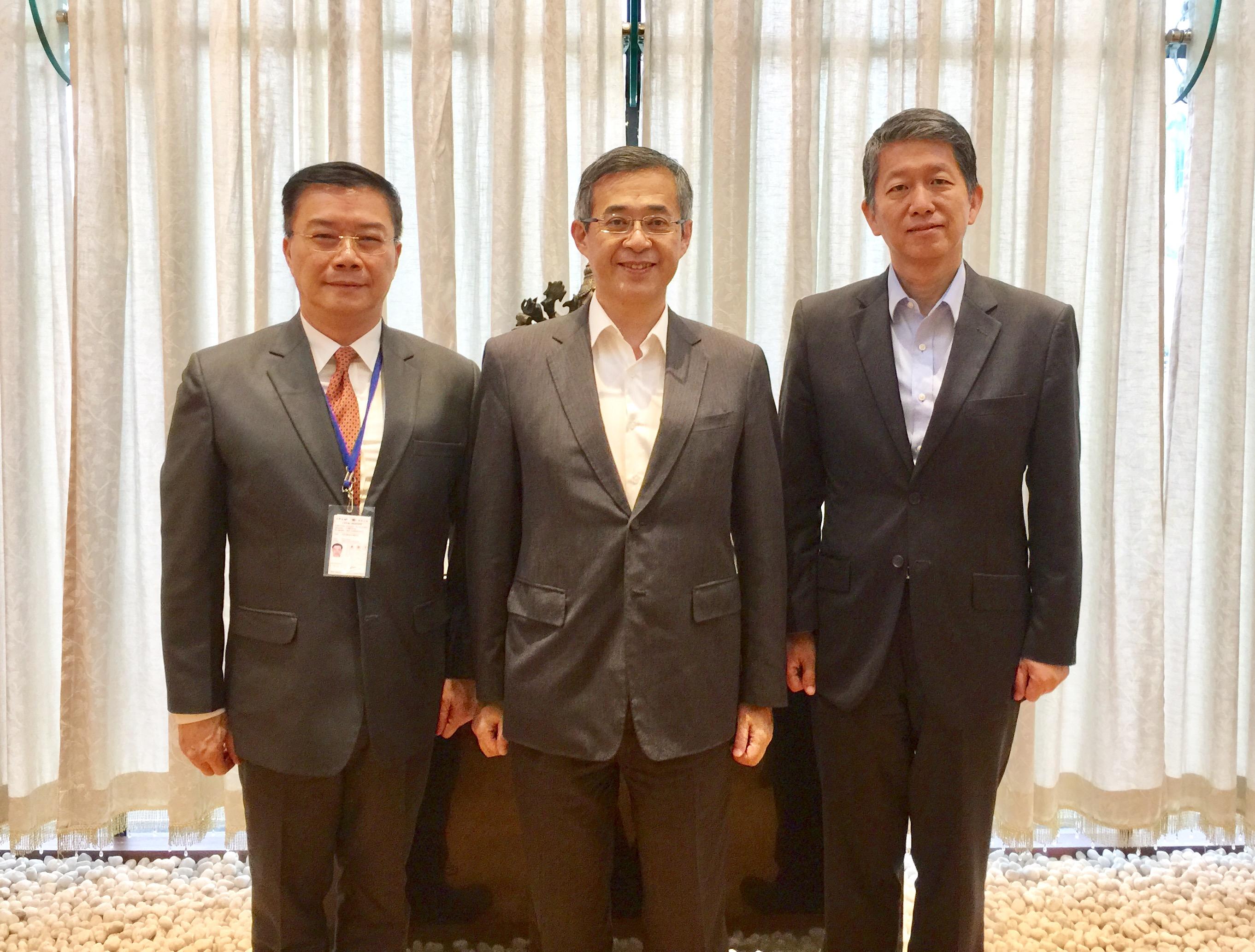 教育部姚立德政務次長(中)、駐清奈辦事處李朝成處長(左)、教育部國際級兩岸教育司畢祖安司長(左)在清奈機場貴賓室合影