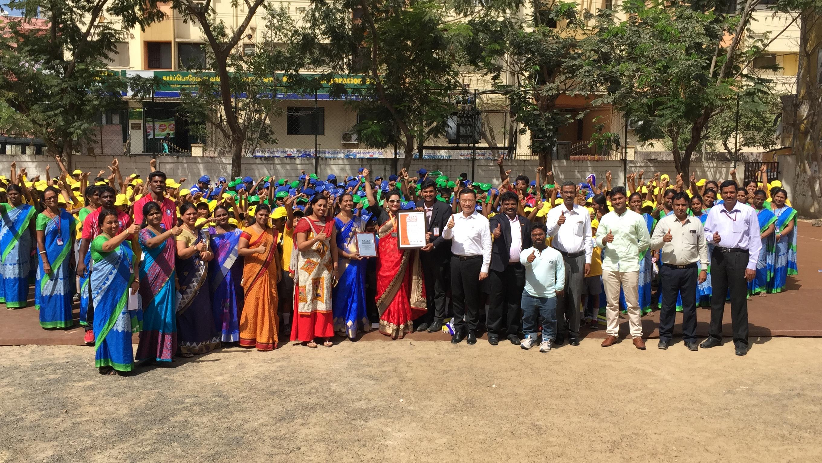 聖布里托學校(St. Britto's Academy) 450名四、五年級學生在該校廣場,創下最多人排列出"拯救水源 拯救地球"(Save Water, Save Earth)圖案亞洲紀錄