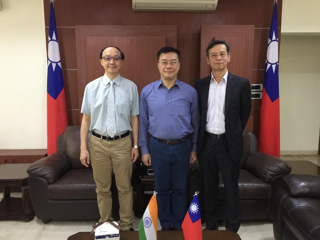 國立交通大學電子研究所教授兼所長陳宏明博士與臺灣積體電路製造股份有限全球人才開發部魏烈恒經理9月16日上午拜會駐清奈辦事處李朝成處長,洽談召募高素質印度科技人才的策略與經驗,及就如何加強臺灣在「新南向政策」指導下,推動與印度雙向人才培育、交流之構想交換意見。