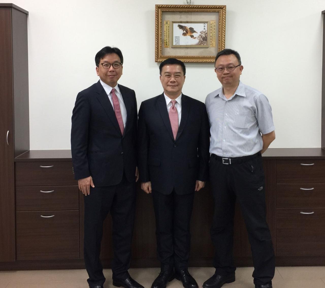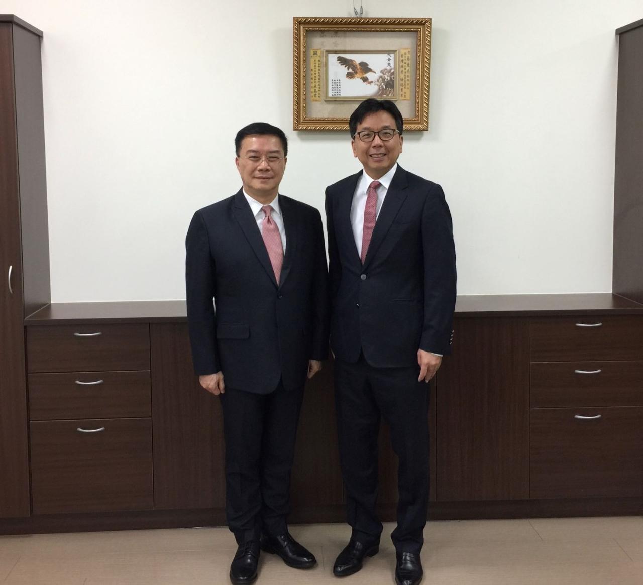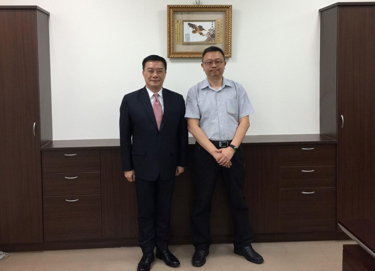 駐清奈辦事處李朝成處長(左)拜會國立中興大學法政學院蔡東杰院長(右)