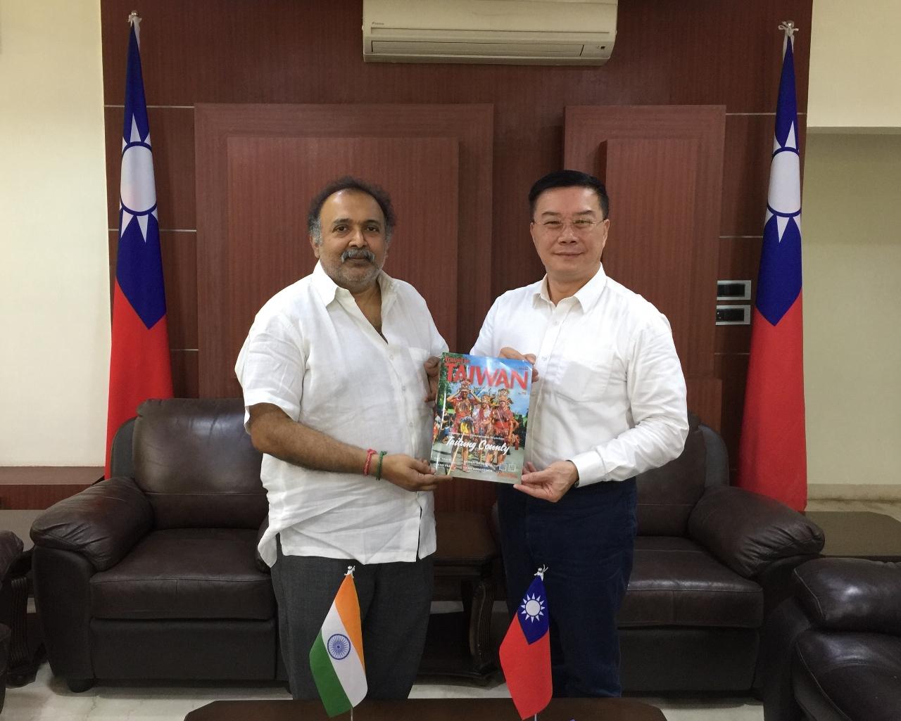 「印度電影聯盟」(Film Federation of India)秘書長Mr. Ravi Kottarakara 11月8日上午拜會駐清奈辦事處李朝成處長,簡報安排一位泰盧固語(Telugu)電影製片兼導演近期即將前往臺灣實際勘查電影場景有關作業時程。李朝成處長對此發展表示歡迎,並請K秘書長同步知會印度臺北協會史達仁會長,共同協助推動印度電影在臺灣取景拍攝,並積極推薦優秀印度影片在臺灣參加電影節活動,加強兩國人民相互對彼此的文化有更深入的瞭解。