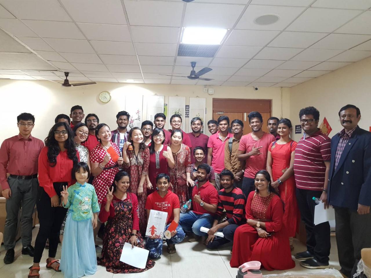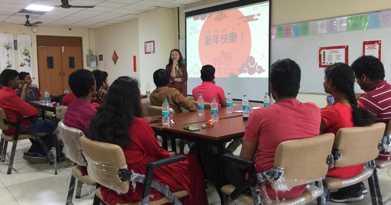 印度清奈地區SRM大學(SRM University)、印度理工學院馬德拉斯分校(IIT-Madras)及維爾科技大學(Veltech)華語班2月23日下午在SRM大學臺灣教育中心共同舉辦慶祝春節特別活動,駐清奈辦事處李朝成處長偕金玉琪副組長應邀出席,與三所大學研習華語的部分學生代表歡度喜氣洋洋、別開生面的文化宴饗。