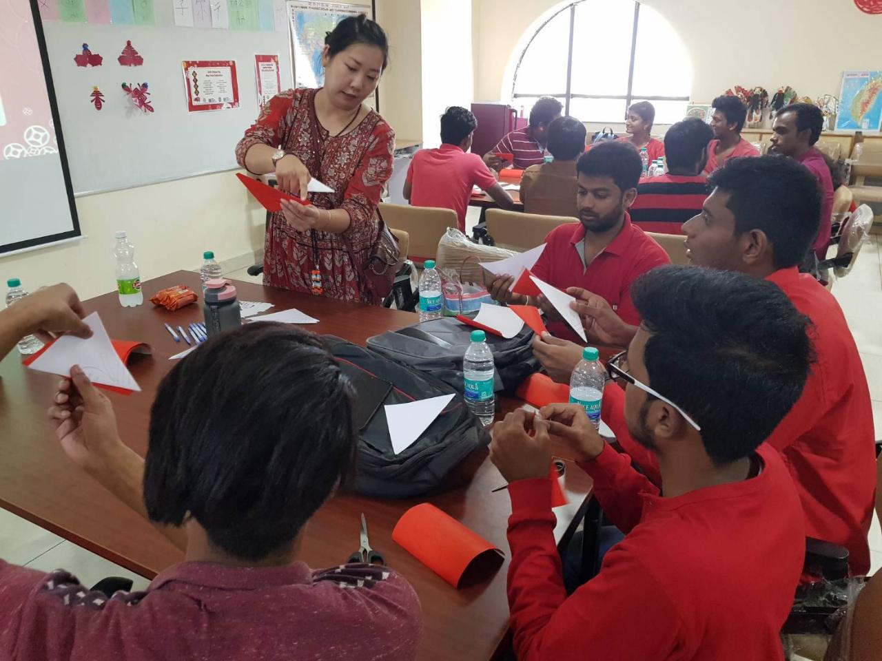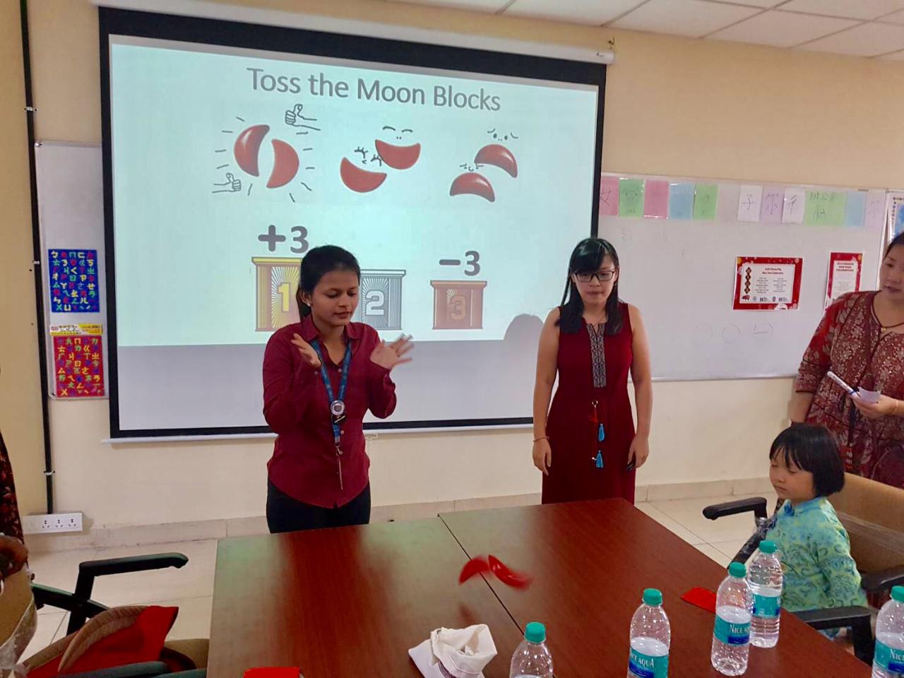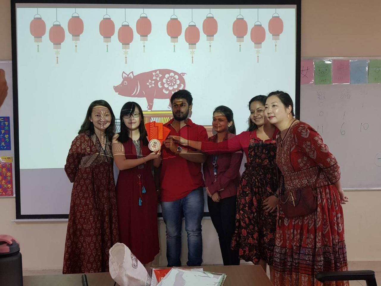 來自臺灣、分別在各大學任教的蔡翎芸、張瓊文、吳玲玲等三位華語老師分別就春節各項民俗傳統活動的深度文化意涵、發紅包、剪紙、中國結、擲爻、有獎徵答的節目,與各校學生代表熱烈互動,完成溫馨豐收的春節華語課程。