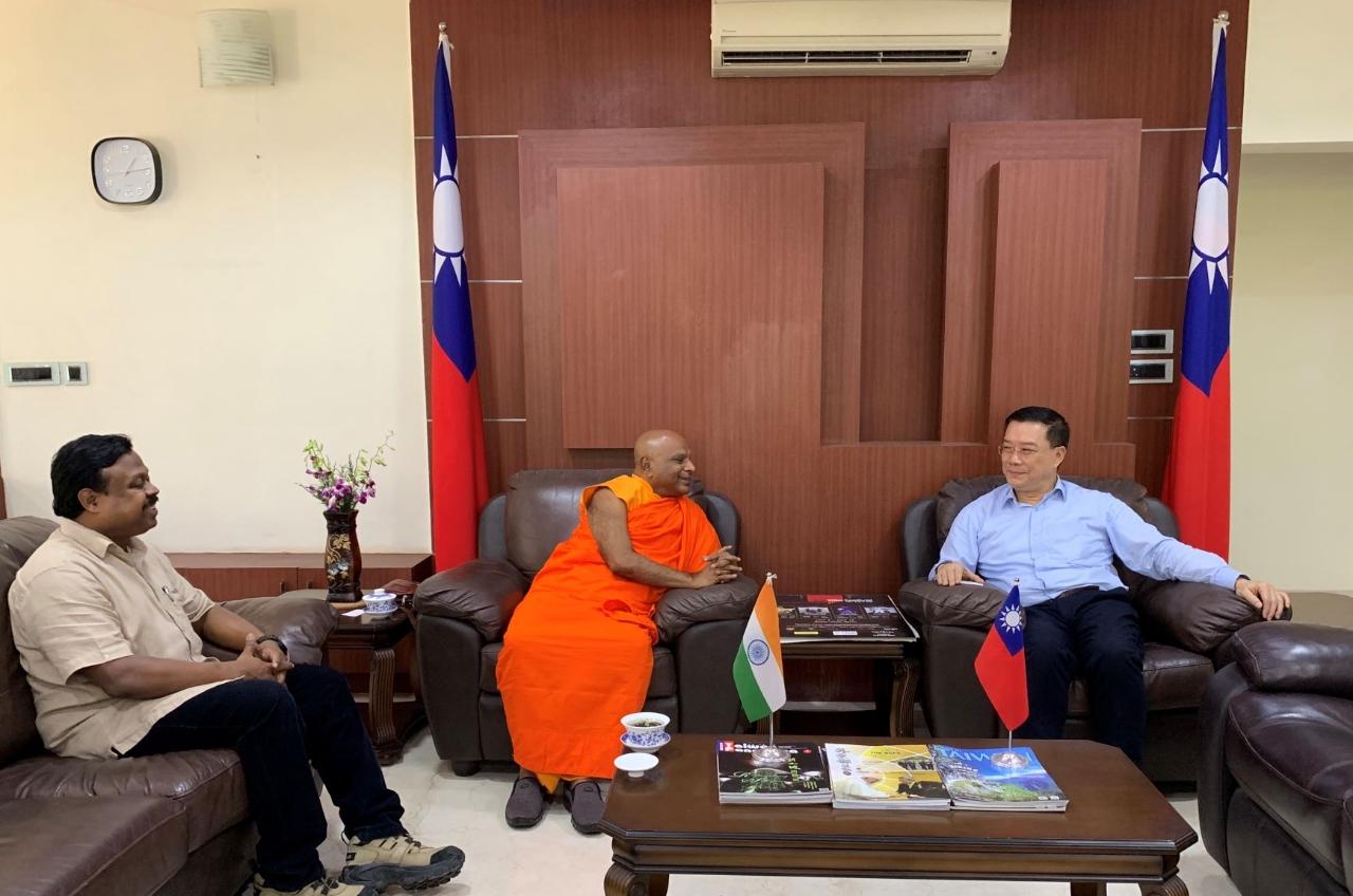 印度摩訶菩提協會(Maha Bodhi Society of India)會長上座佛教大法師Dr. D. Rewatha Nayaka Thero偕副會長Roshan Wijesekera拜會駐清奈辦事處李朝成處長。
