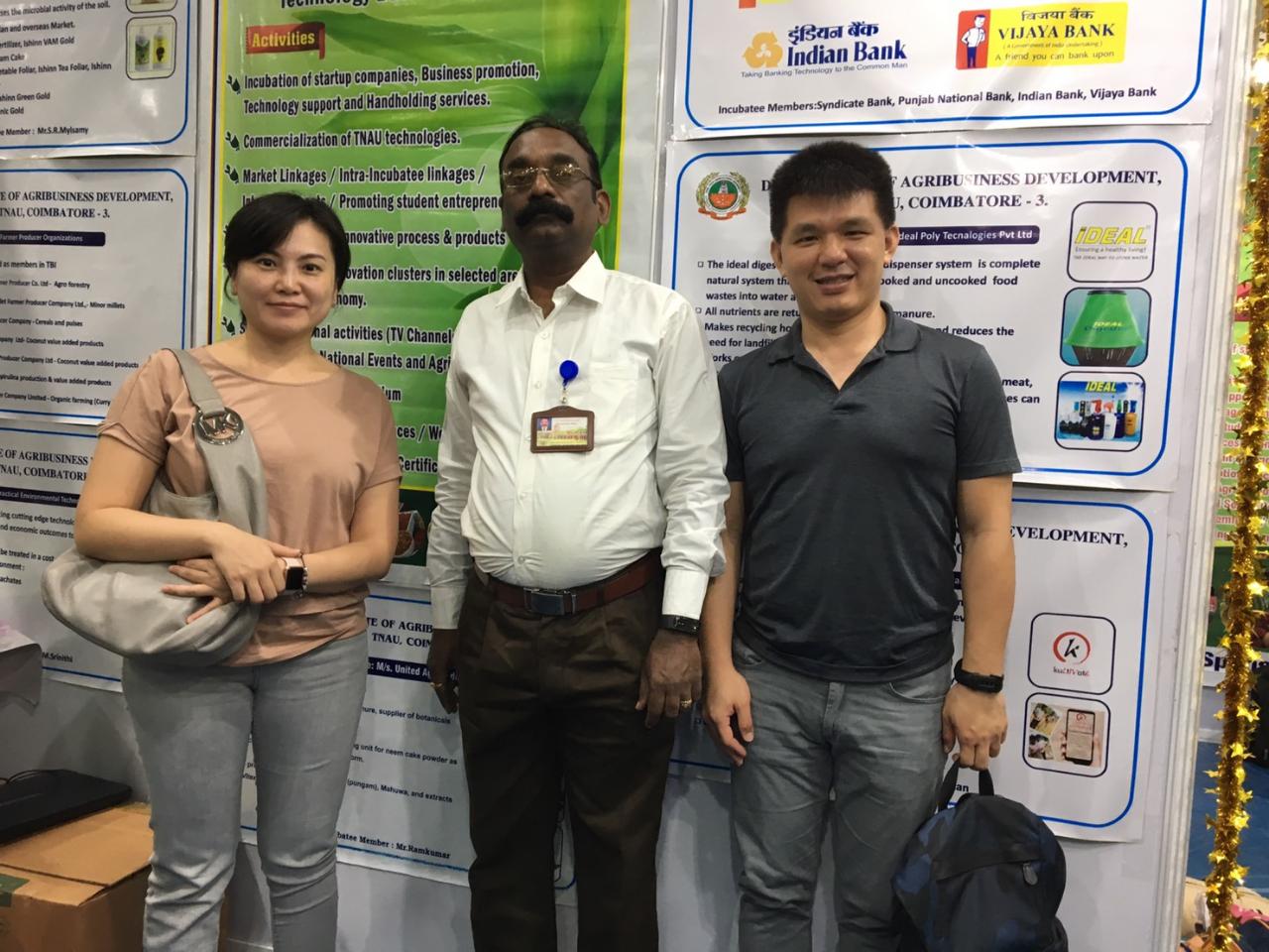 南印度最大農業展第19屆AGRI INTEX 於7月12日至15日假Coimbatore 之Codissia貿易展覽中心舉行,該農業展是由Codissia貿易展覽中心與泰米爾那都州農業大學(TNAU)聯合舉辦,並主要展覽現代化農業、園藝、畜牧及食品加工最新技術及機具,除印度當地廠商亦有來自美國、英國、以色列、中國大陸、日本、德國、義大利、瑞典和法國等450名廠商參展,逾150萬人次前往參觀。駐清奈辦事處金玉琪副組長於13日前往參訪,並與泰米爾那都州農業大學科技新創中心主任A.V. Gnanasambandam 及 農業推廣教育主任Prof. S. Raguraman就印度農業市場及國際合作發展交換意見,渠等均歡迎臺灣農業大學或企業前來印度合作交流。