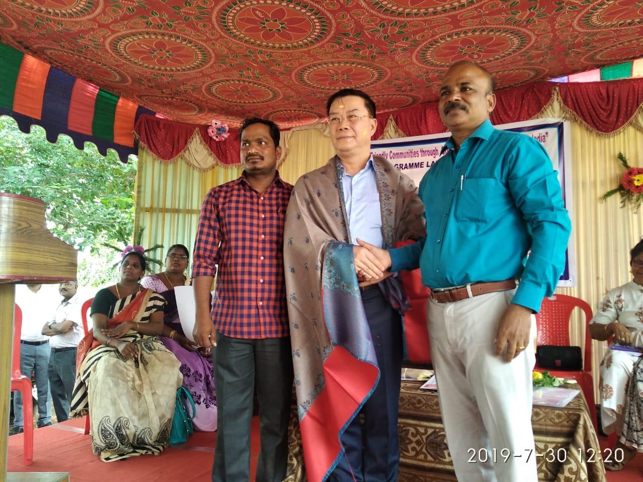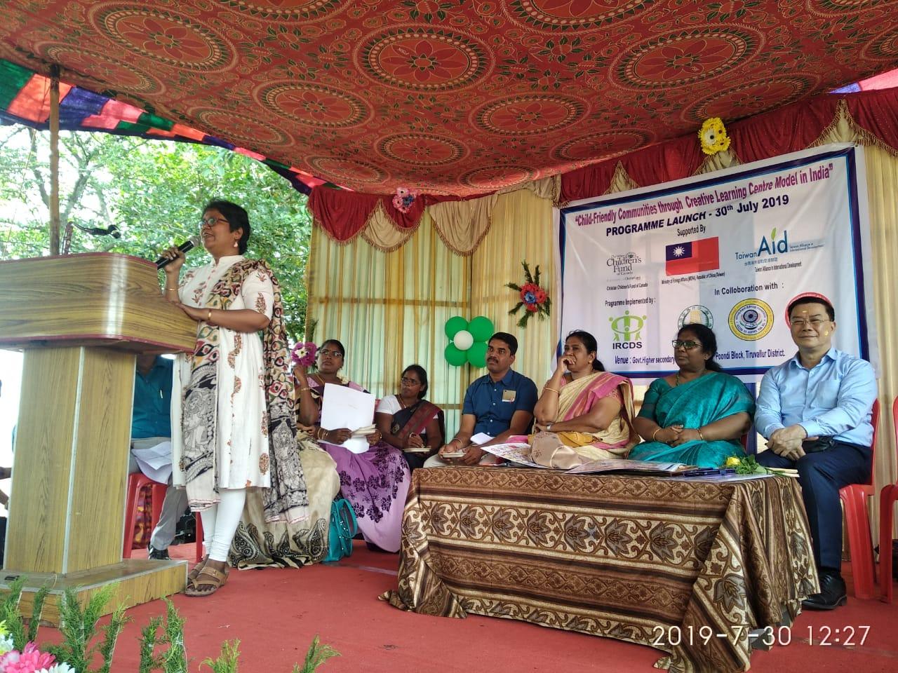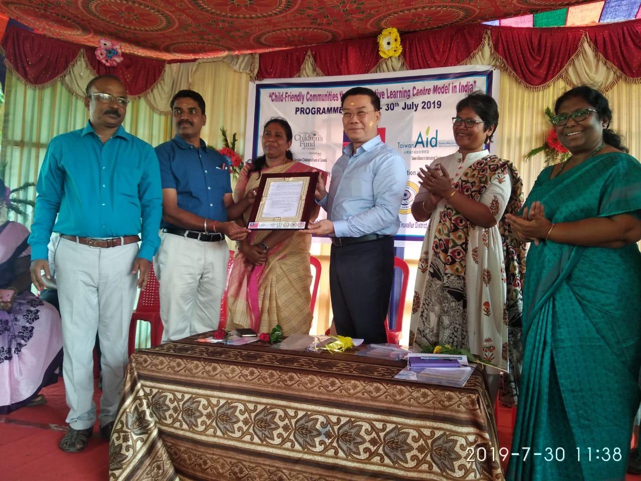 中華民國外交部捐助「臺灣海外援助聯盟」(Taiwan Alliance in International Development, Taiwan Aid)與「加拿大基督教兒童基金會」(Christian Children’s Fund of Canada, CCFC)合作在印度清奈共同推動之「透過創意學習中心之模式打造印度兒童友善社區及提供法律服務」(Child-Friendly Communities and Legal Services through Creative Learning Centre Model in India)計畫啟動儀式於730日上午在Tiruvallur地區Seethanjery公立高中(Government Higher Secondary School)舉行,駐清奈辦事處李朝成處長偕金玉琪副組長應邀出席。本計畫執行單位是「整體鄉村社區發展協會」(Integrated Rural Community Development Society, IRCDS),協辦單位包括地區法律扶助處、兒童保護組、州政府社會褔利部、教育部及社區發展部等,是一項由中華民國政府、泰米爾那都州政府與臺灣、加拿大之國際非政府組織與清奈民間機構、多所公立學校通力合作推動保護兒童之綜合計畫。所有參與此項計畫之政府及民間單位都對中華民國外交部及「臺灣海外援助聯盟」之贊助,表示由衷感謝。