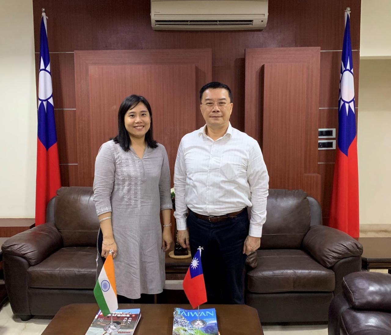駐清奈辦事處李朝成處長(右),印度理工學院馬德拉斯分校(IIT-Madras)新任華語教師袁筱惠(左)