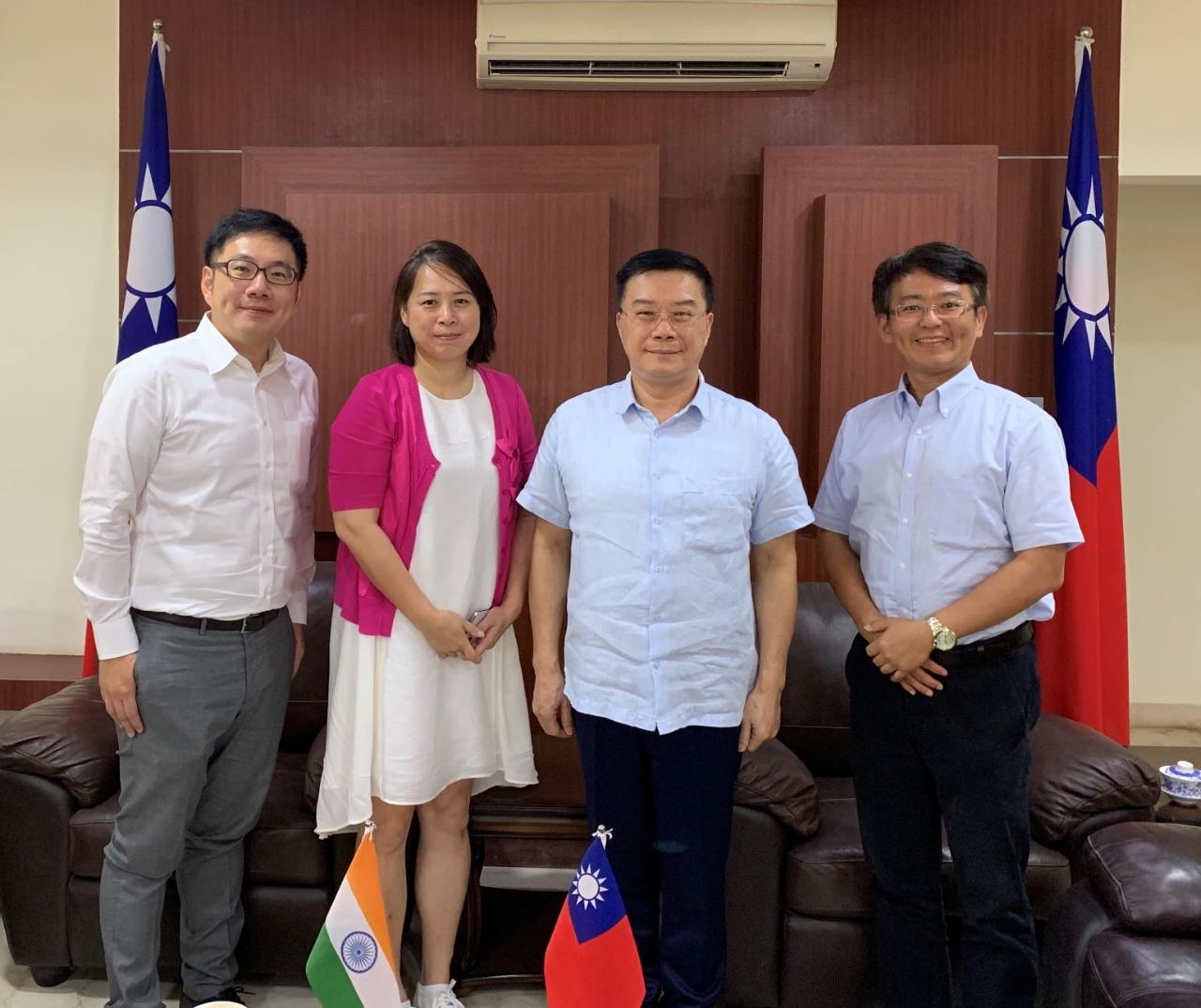 緯創資通股份有限公司(Wistron)人力資源處林惠卿經理、印度廠劉邦印廠長及陳建南財務長8月8日上午拜會駐清奈辦事處李朝成處長就印度投資環境、條件及赴臺灣之簽證程序交換資訊。