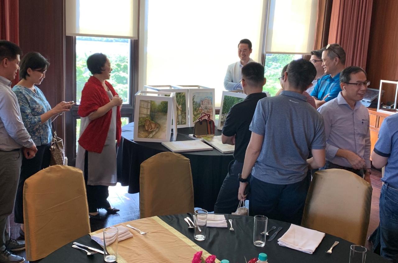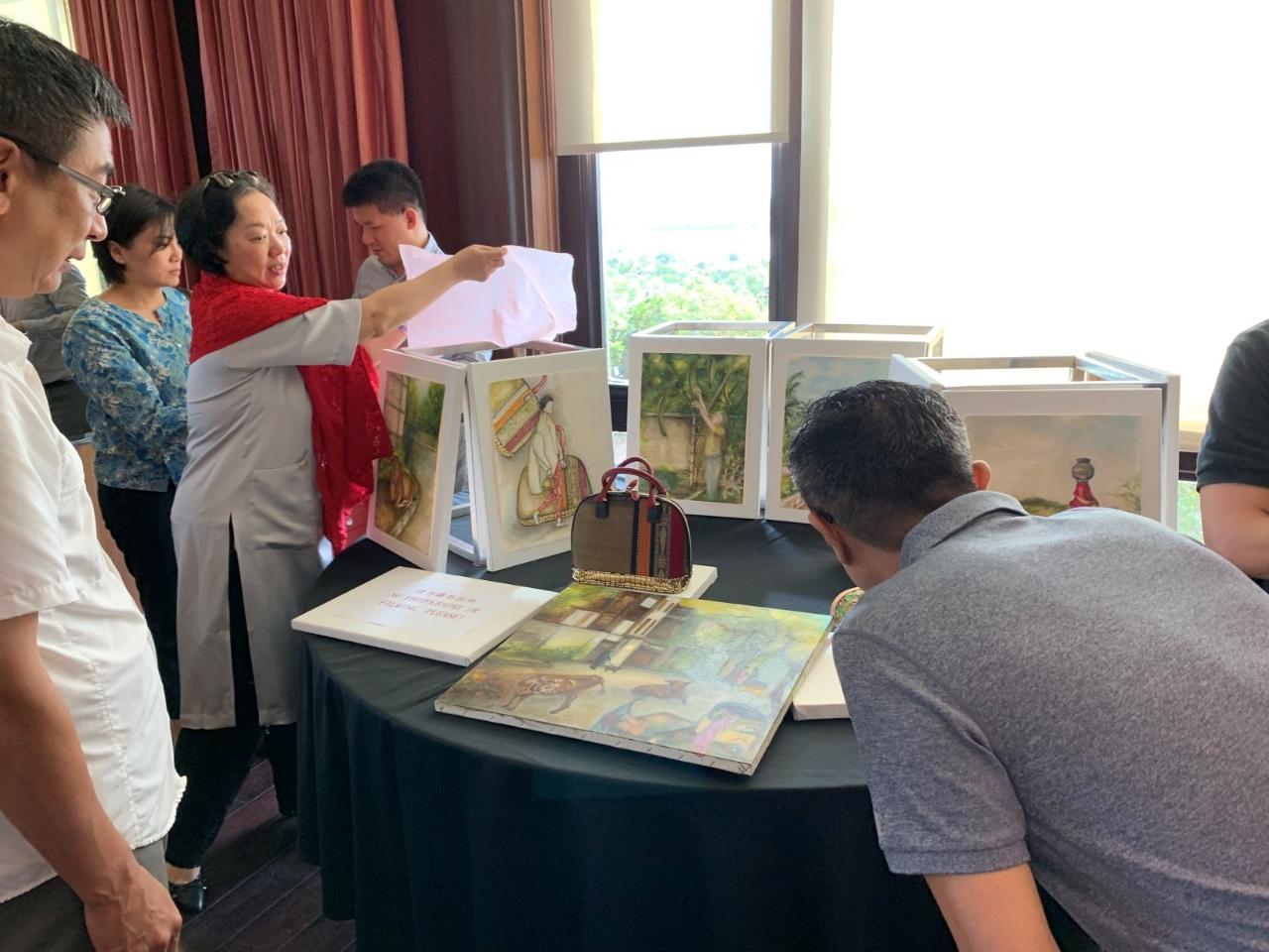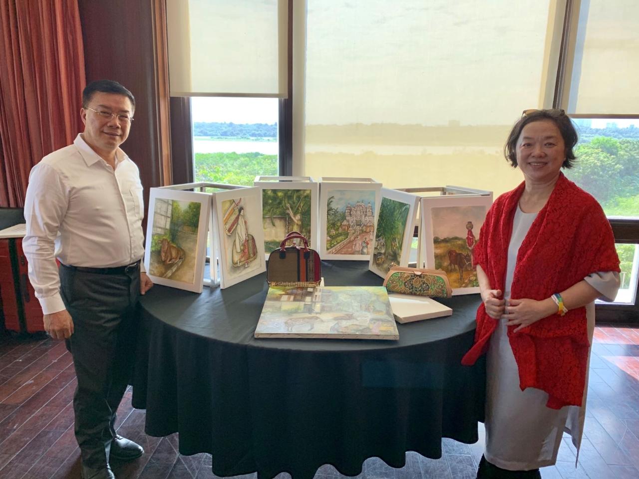 駐清奈辦事處李朝成處長夫人吳鶯煦女士12月8日中午舉辦「清奈印象」小型畫作及皮包展示會,與臺商、僑胞分享過去四年多在印度生活受到當地藝術、文化、環境的啟發,運用當地特有的素材、景緻自行設計的皮包、畫作等一小部分作品,展現在清奈用心感受、停止多慮、開始生活的正向精神與經驗。