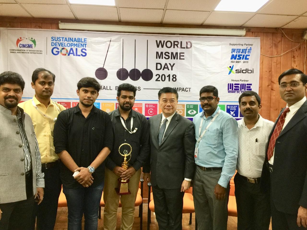In celebration of the 2018 World MSME Day and the Introduction of the Tamil Nadu Chapter Office bearers, the Confederation of Indian Micro, Small and Medium Enterprises invited Mr. Charles Li, the Director-General of Taipei Economic and Cultural Center in Chennai, as an VIP to witness the ceremony on the morning of Wednesday, June 27, 2018.