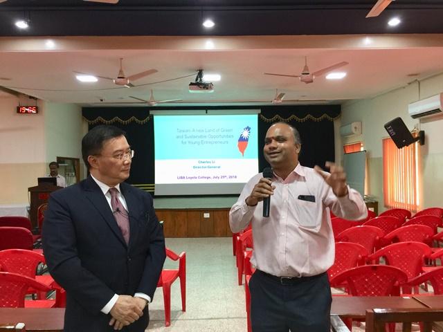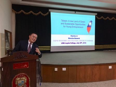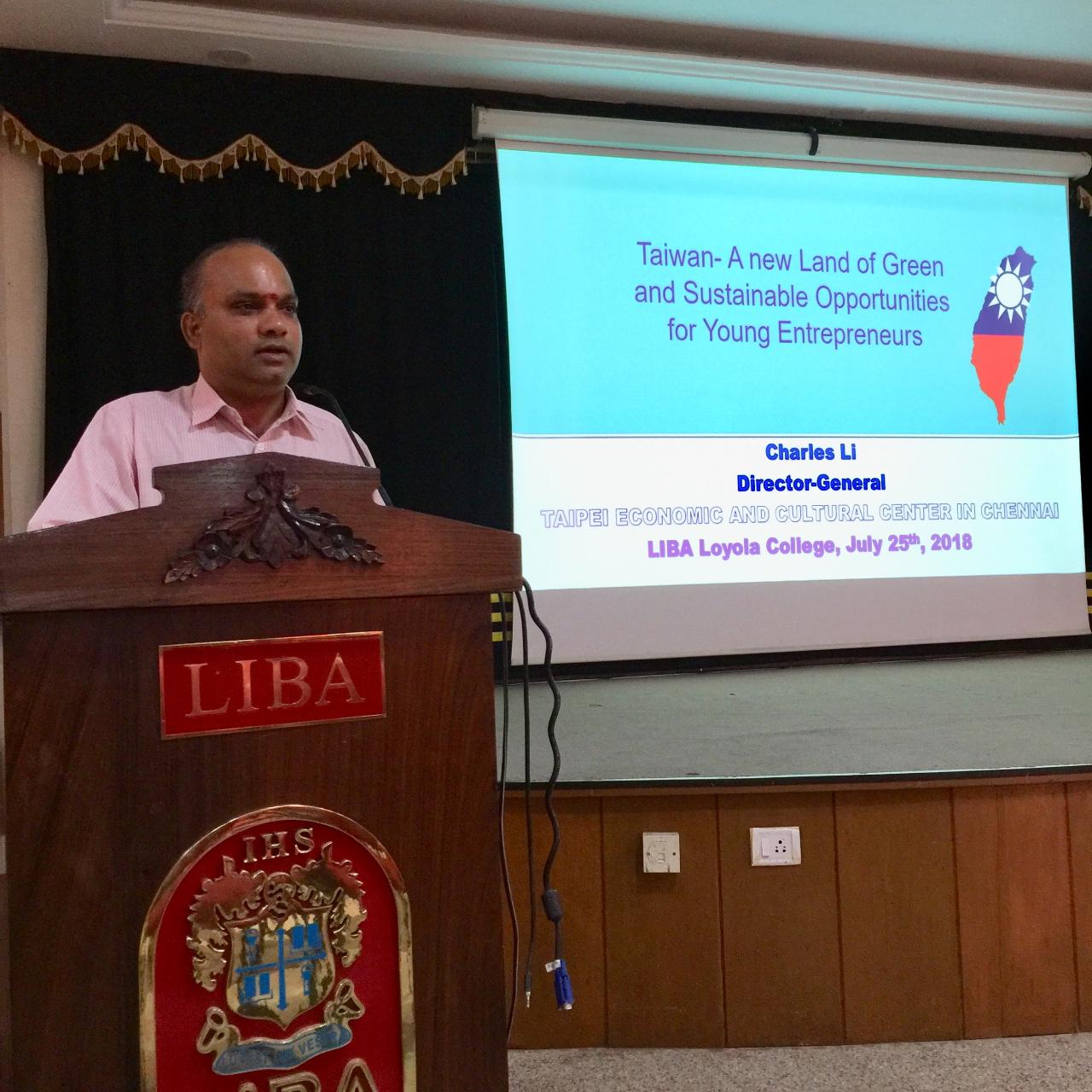 Loyola Institute of Business Administration (LIBA) invited Director- General Charles Li to deliver a speech on the topic, “Taiwan: A new land of green and sustainable opportunities for young entrepreneurs” to the students in the afternoon of 25th July 2018.
