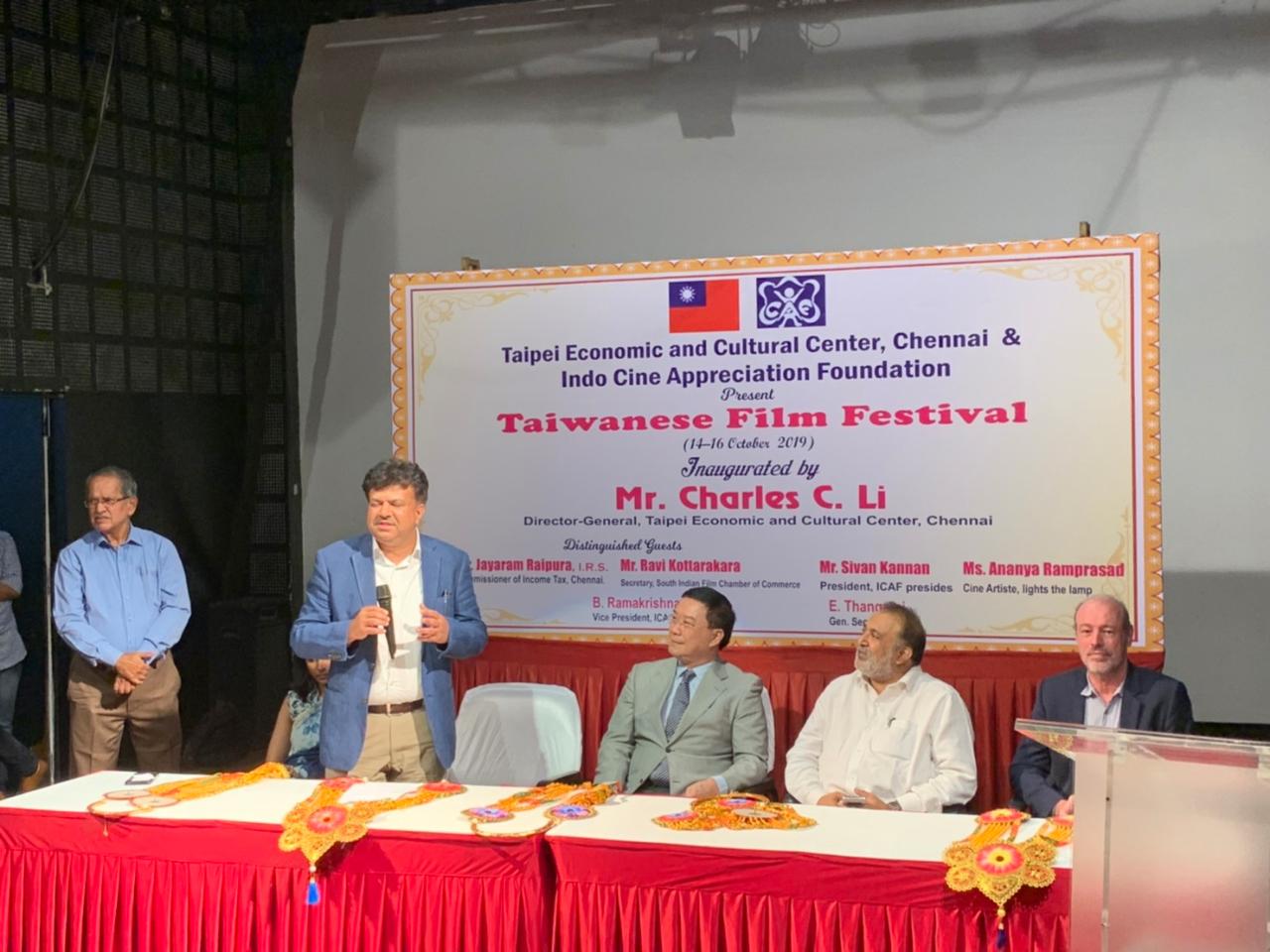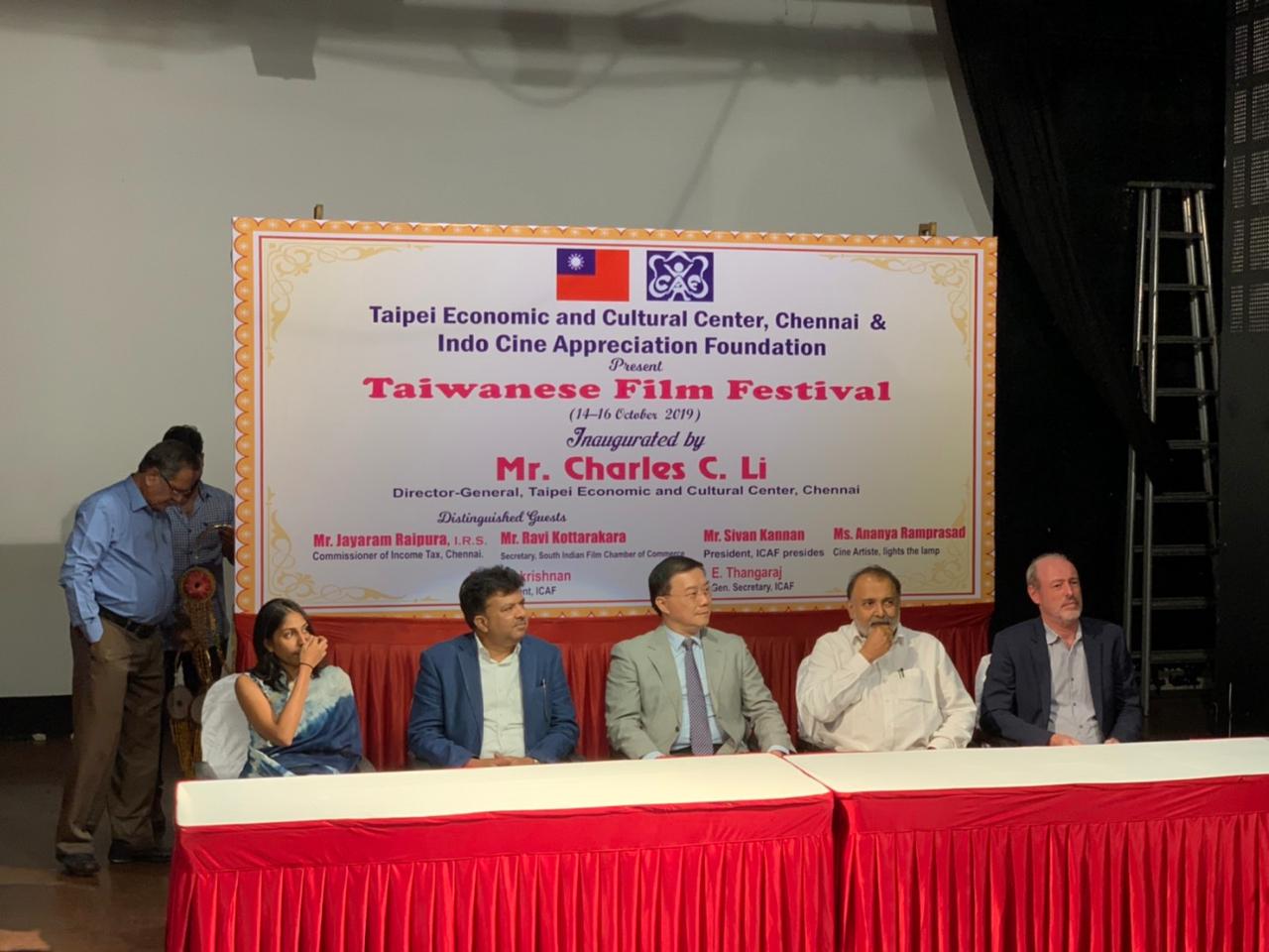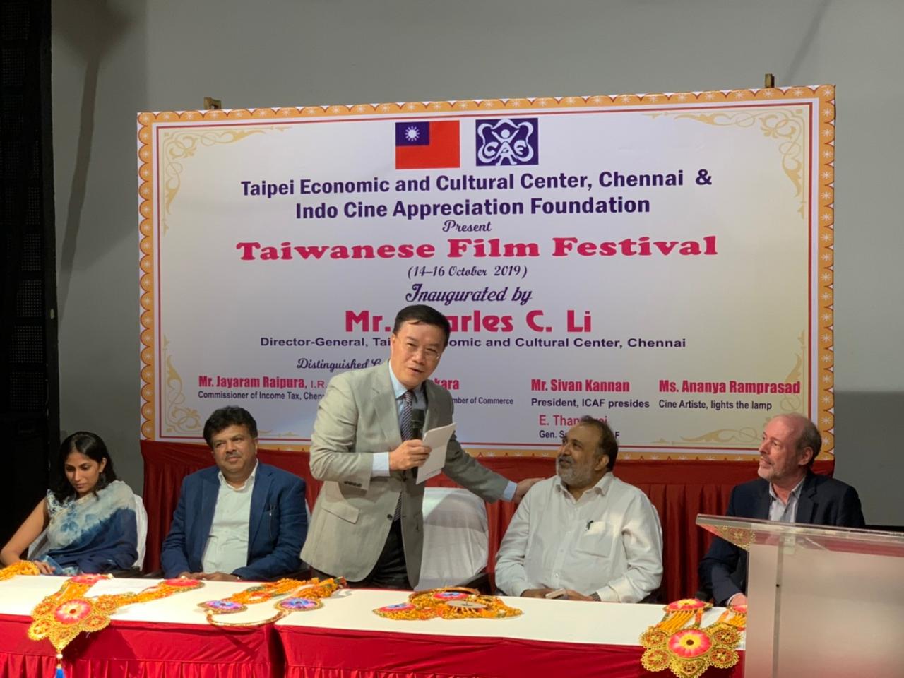 In association with the Indo Cine Appreciation Foundation, Director-General Charles C. Li of the Taipei Economic and Cultural Center in Chennai inaugurated the 2019 Taiwanese Film Festival at the Alliance Française of Madras in Chennai on the evening of October 14, 2019.