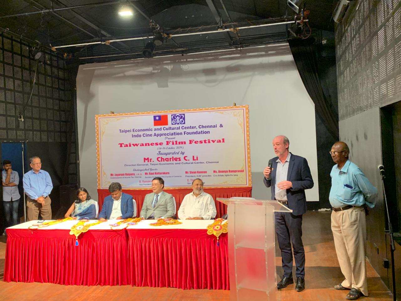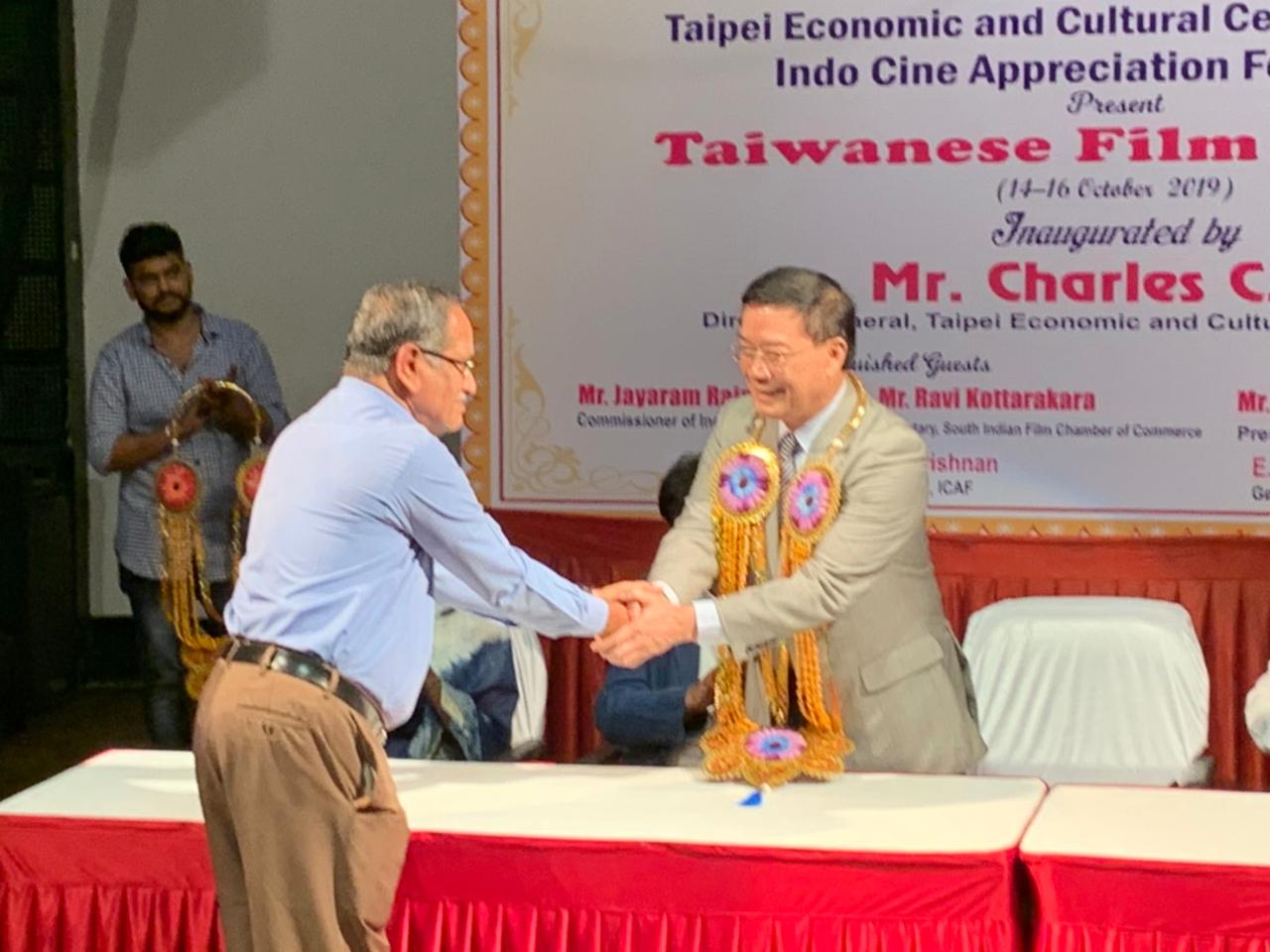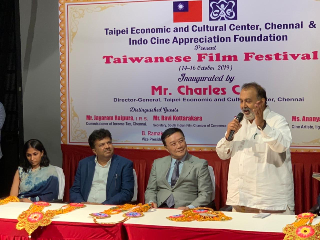 In association with the Indo Cine Appreciation Foundation, Director-General Charles C. Li of the Taipei Economic and Cultural Center in Chennai inaugurated the 2019 Taiwanese Film Festival at the Alliance Française of Madras in Chennai on the evening of October 14, 2019.