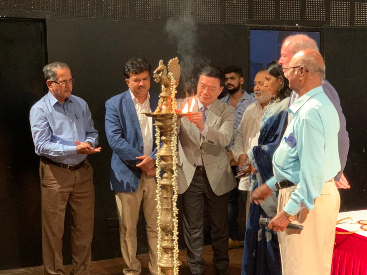 Ms. Ananya Ramprasad, an Cine Artiste, led the Lamp lighting ceremony followed by Director-General Mr. Charles C. Li, along with Mr. Bruno Plasse, Director of the Alliance Française of Madras, Mr. Jayaram Raipura, I.R.S., Commissioner of Income Tax, Chennai, Mr. Ravi Kottarakara, Secretary of the South Indian Film Chamber of Commerce, and as well as Mr. E. Thangaraj, General-Secretary of the Indo Cine Appreciation Foundation (ICAF).