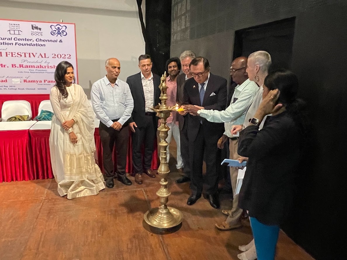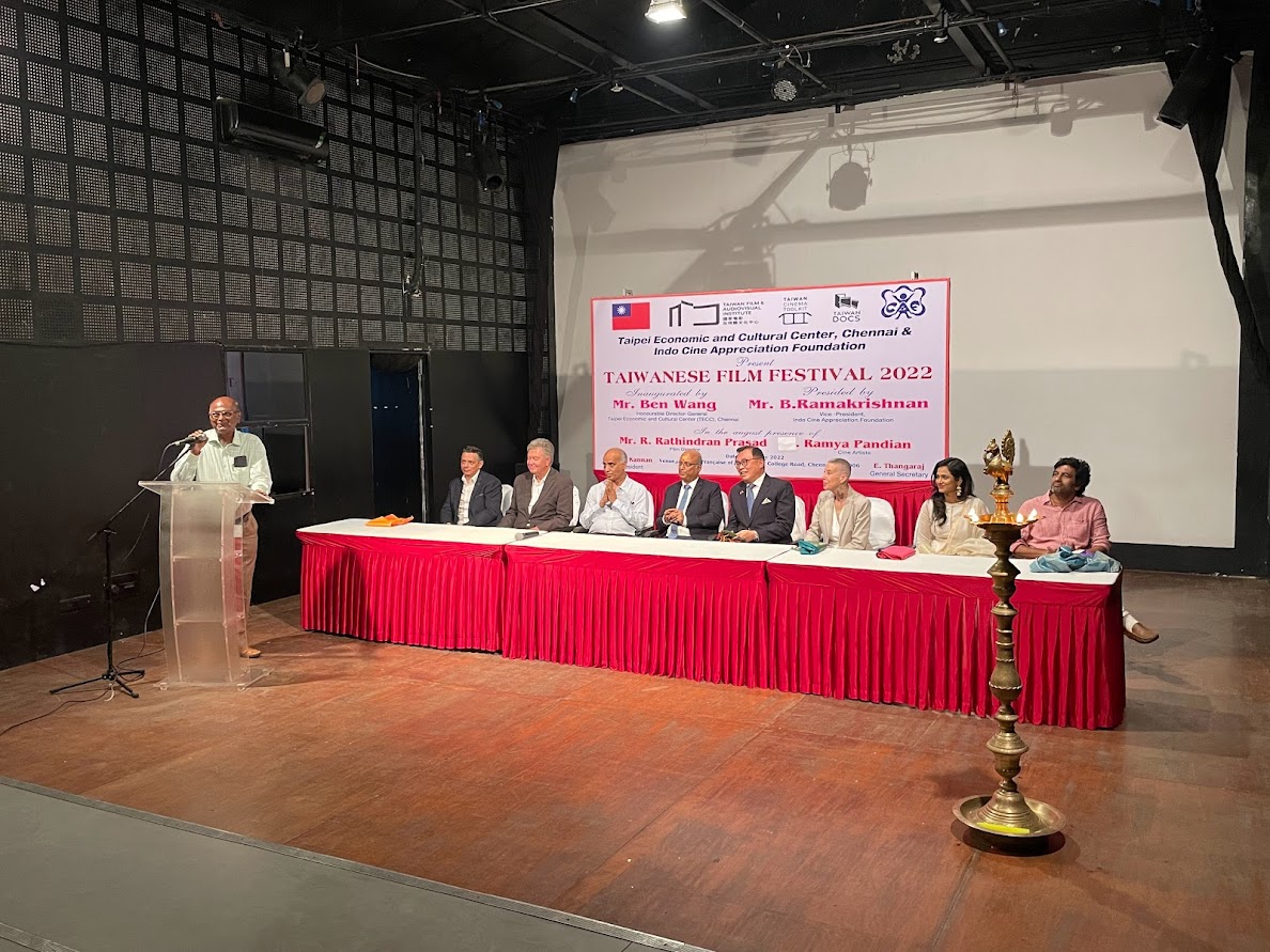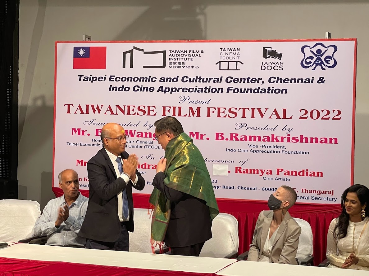 Taiwan film festival 2022 inauguration was successfully held at Alliance Francaise of Madras on 23rd May 2022 with dignitaries from many countries and Rathindran R Prasad, Actress Ramya Pandian. TECC Chennai appreciates Indo Cine Appreciation Foundation and 國家電影及視聽文化中心 Taiwan Film and Audiovisual Institute for cooperating in this festival. Director-General Ben Wang said, "We should facilitate and promote mutual understanding between India and Taiwan through film festivals and other cultural activities" "We hope friends from South India can get to know better the social and cultural facets of Taiwan and its vibrant democracy. "