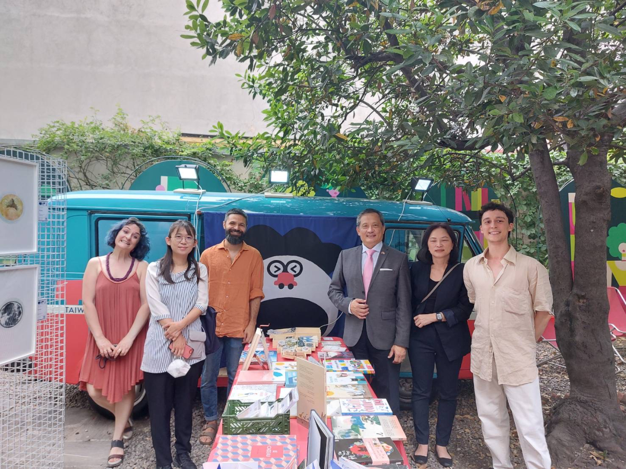 義國觀展民眾對展出的臺灣插畫作品、出版品、文具及文創品表達熱情喜愛