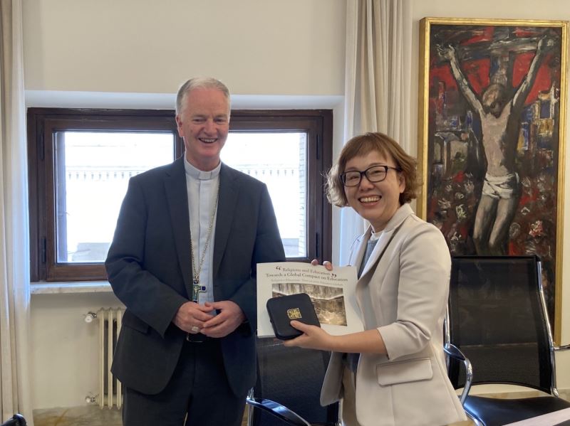 繼2016、2017年文化部組團訪問教廷後,文化部政務次長王時思於疫後首次率團出訪,在駐教廷大使館大使李世明陪同下,昨(17)日拜會教廷文化教育部政務次長提格(Paul Tighe)主教及常務次長波瓦尼蒙席(Carlo Maria Polvani),雙方就臺梵間多項議題,包括持續合作推動文化資產修復人才交流計畫、分享宗教場域透過修復藝術資產成為常民博物館,以及未來臺梵文化交流進行深入交流、討論。