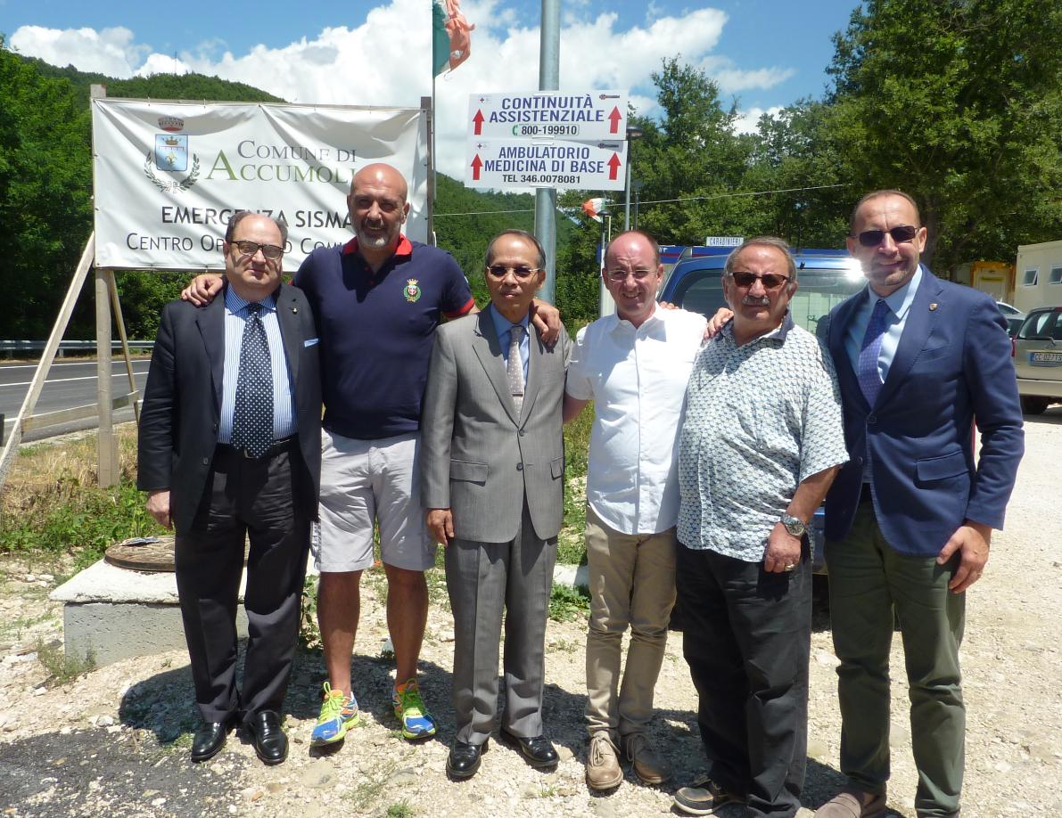 聯合捐贈儀式於當日中午12時在Accumoli市政府地震緊急處理應變中心舉行,義方出席人員包括受贈三城市Accumoli市長Stefano Petrucci、Amatrice市長Sergio Pirozzi及 Arquata del Tronto市長( Alessandro Petrucci),另Paolo Arrigoni參議員、義大利「國會友台協會」秘書長Camillo Zuccoli大使等政要均到場觀禮。