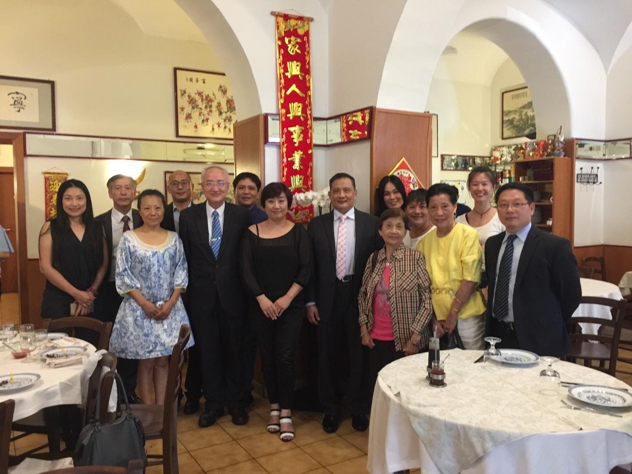 李新穎大使(左八)本日抵任隨即與羅馬地區僑領餐敘並合影