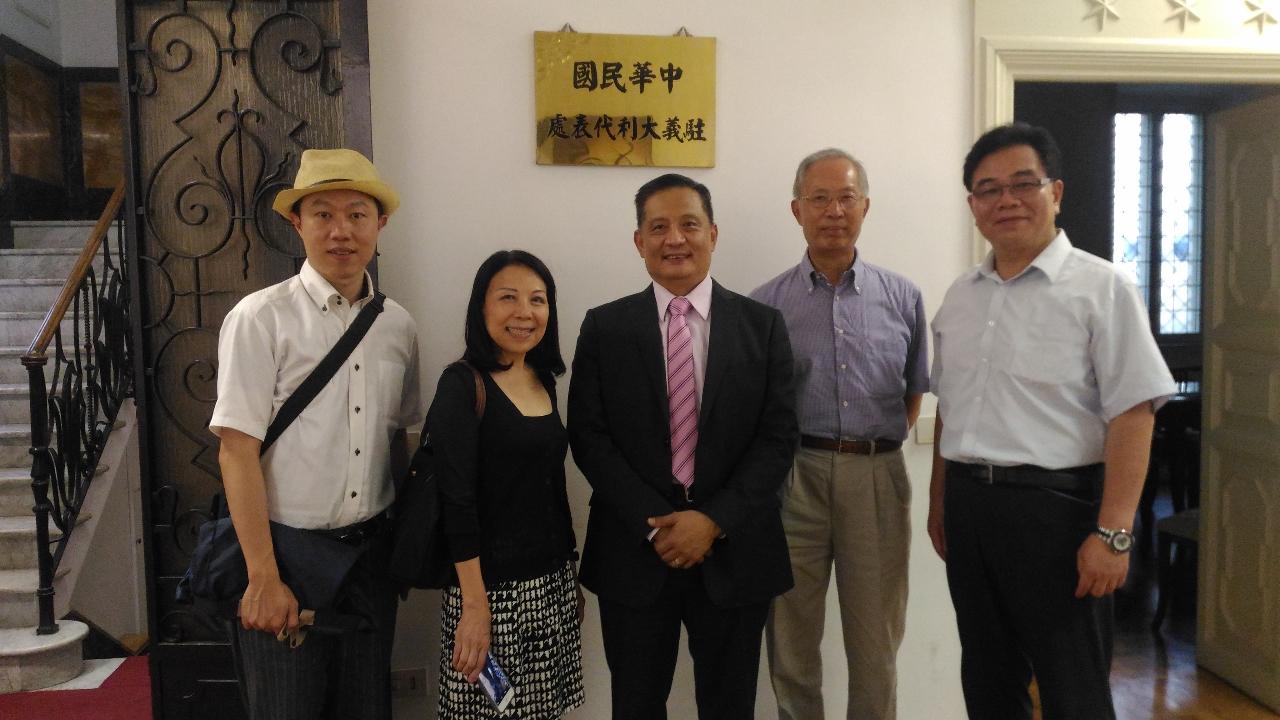 賴院長一行於8月7日下午來處拜會李新穎大使,就台義高等教育合作現況及未來雙方可加強交流領域等議題交換意見。李大使表示,輔仁大學為我國優良大學,尤其輔大擁全國唯一的義大利文學系,廿多年來已培育上千名義語人才,其中亦有報考外交特考為國效力者,如本處負責領務的王妍潔秘書即畢業於該系。賴院長說明此行訪除羅馬外,將前往佛羅倫斯、米蘭及威尼斯與當地知名大學洽談合作事宜,尤以交換學生為主。李大使對輔大致力國際化的作為予以高度肯定,並表示倘有需要,本處願提供協助促成。
