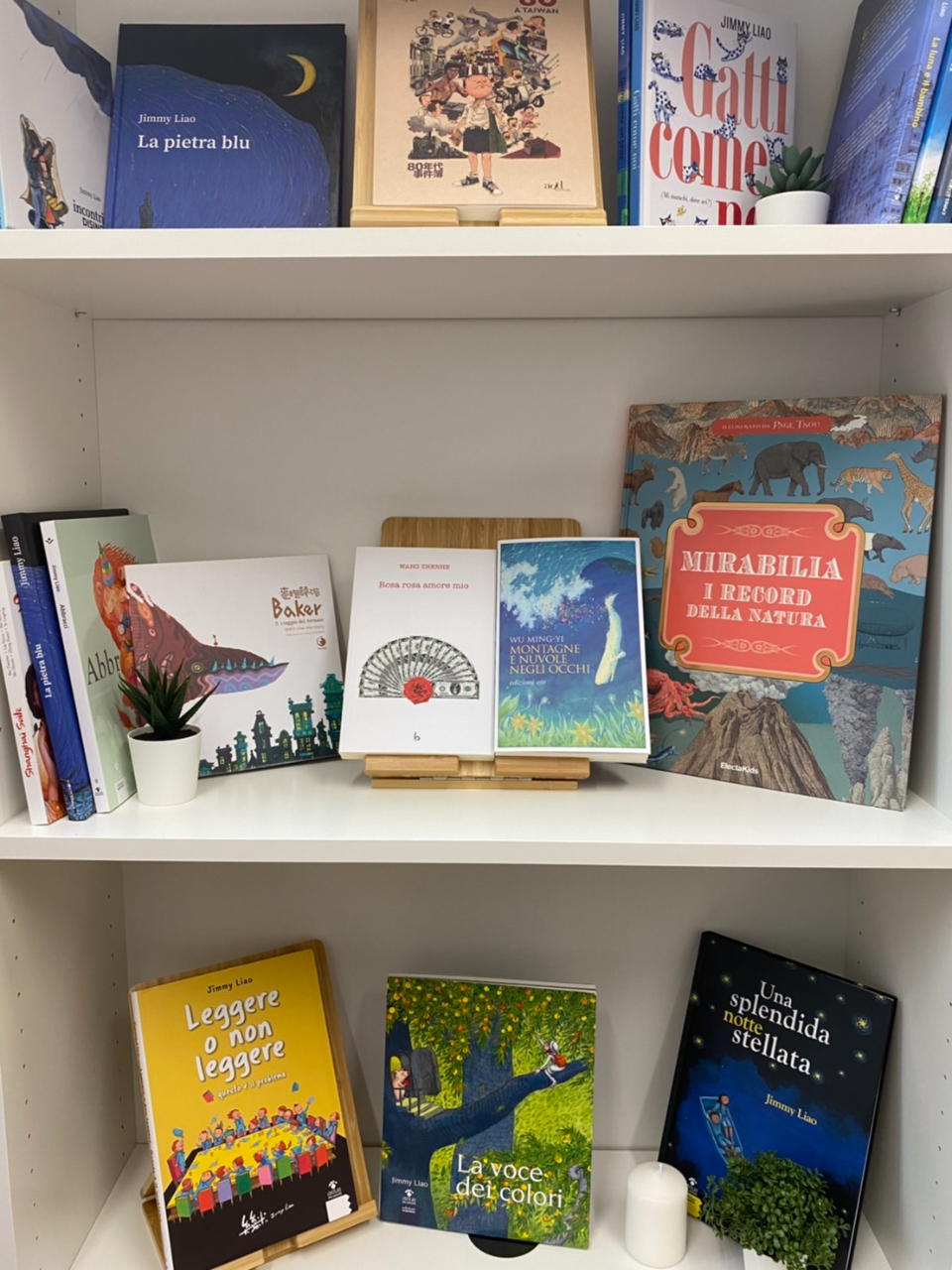 Figura 1: raccolta delle traduzioni di libri taiwanesi edite in Italia in esposizione presso Divisione Culturale dell'Ufficio di Rappresentanza di Taipei in Italia