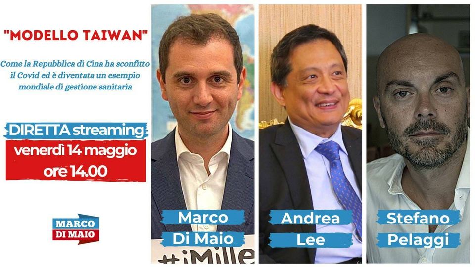 5月14日(週五)下午兩點請大家準時收看: *台灣防疫模式(Modello Taiwan)*座談會 與談人: 駐義大利代表處李新穎大使, 義大利國會議員Marco Di Maio, 羅馬睿智大學副教授Stefano Pelaggi.