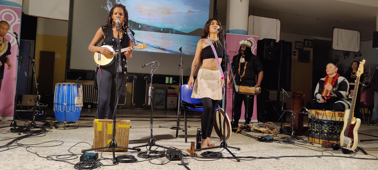 Il duo mauritiano Kan & Kokol si esibisce accompagnato dalla musica di Putad, cantante taiweanese di etnia Amis.