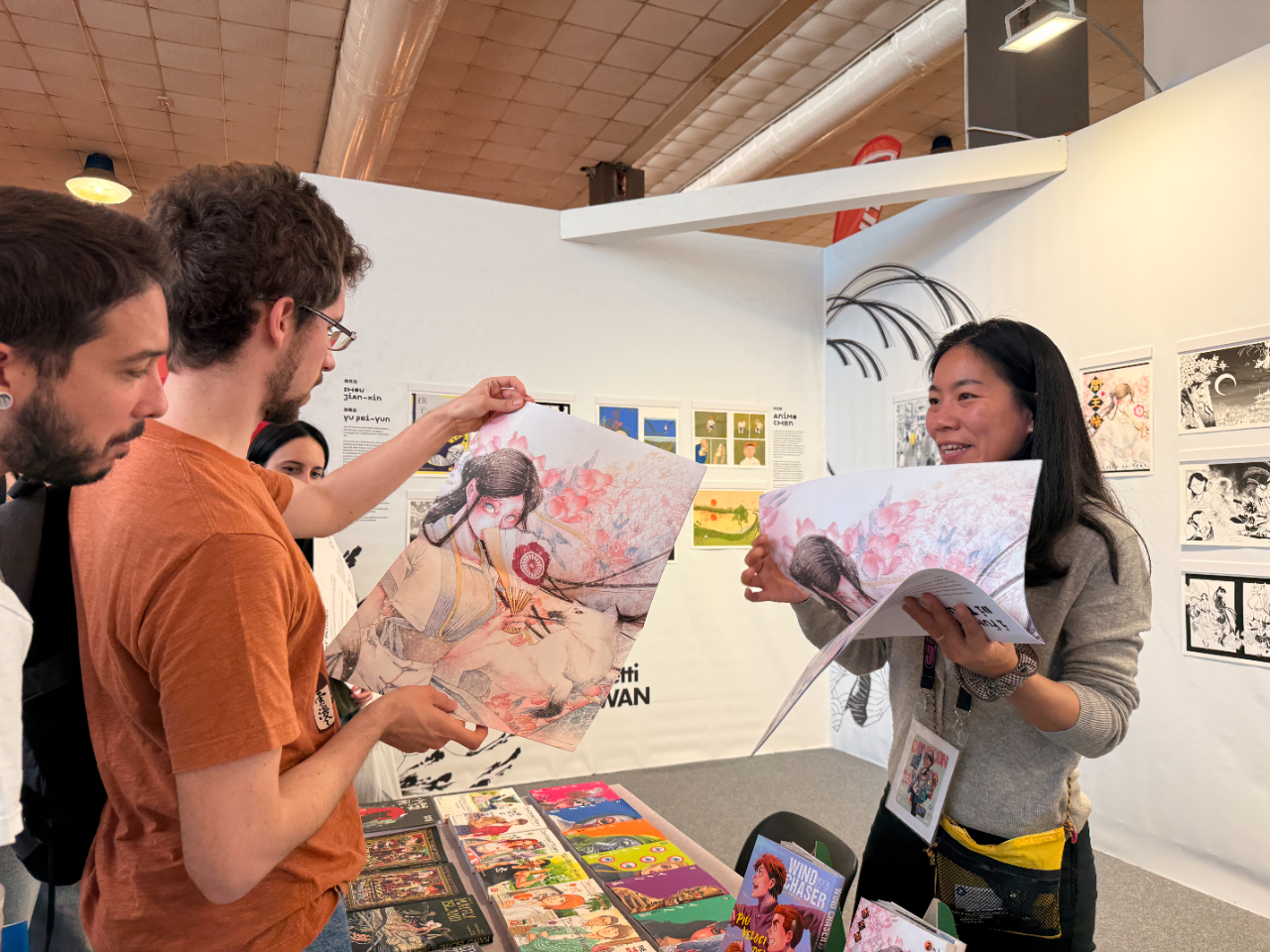 Il padiglione di Taiwan, intitolato “Taiwan Comics”, si presenta con una configurazione simile a un padiglione nazionale, con un marchio unitario dedicato al fumetto taiwanese. Al suo interno sono allestite diverse aree tematiche: una zona per le foto e l’interazione con i fumettisti, un’area espositiva di tavole artistiche, e una sezione “Books from Taiwan” dedicata alla promozione dei diritti d’autore. Sono esposti 30 titoli di oltre 10 autori taiwanesi, includendo volumi in lingua originale, edizioni tradotte in italiano e altre lingue. I fumettisti premiati o finalisti al Golden Comic Award, Jason Chien e YUZI, partecipano con attività di firma e disegno dal vivo, attirando lunghe code di lettori. L’evento è arricchito anche da cartoline da collezione e adesivi a tiratura limitata.