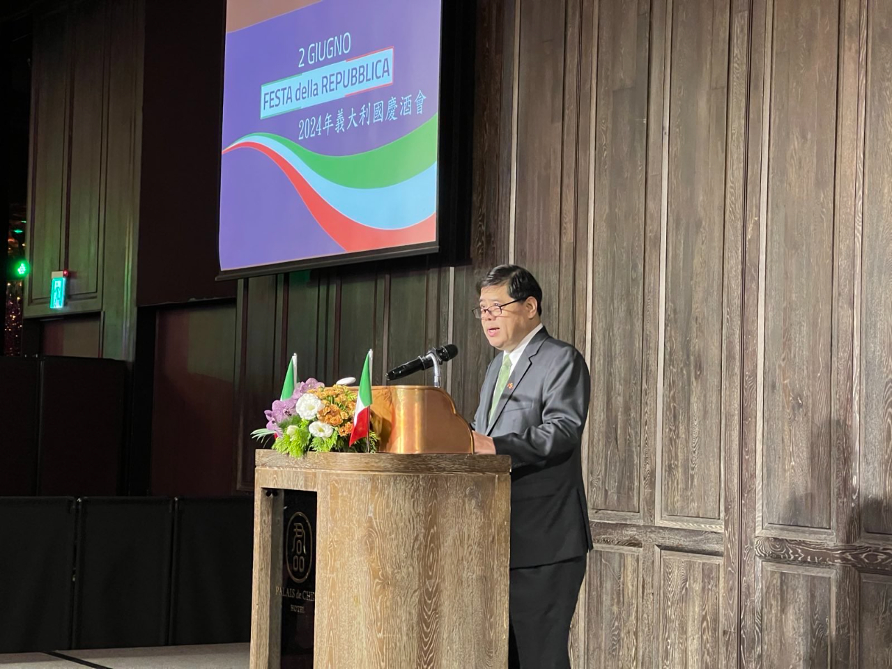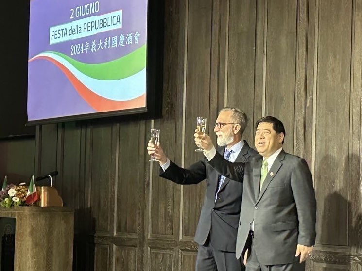 外交部常務次長陳立國於5月31日晚間出席「義大利經濟貿易文化推廣辦事處」(Italian Economic, Trade and Cultural Promotion Office)舉辦的義大利國慶酒會。