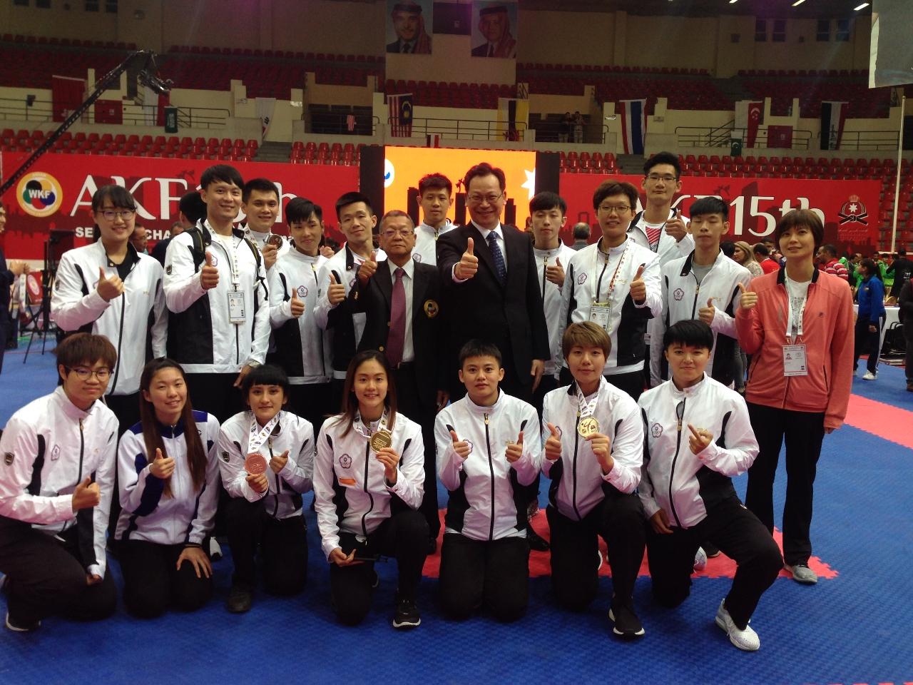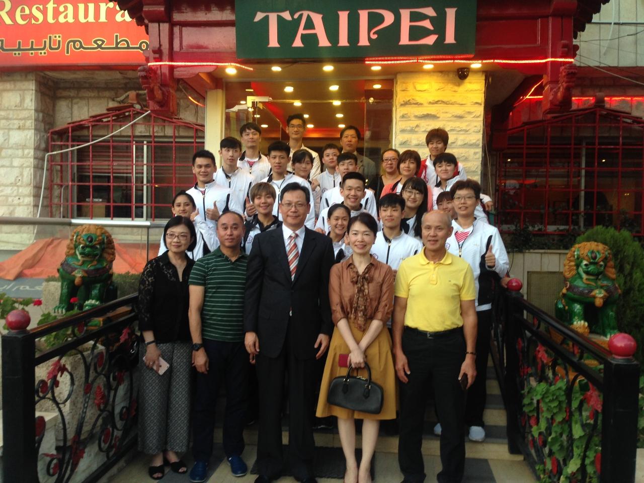 本處新任買代表睿明另於14日晚間出席錦標賽開幕式活動,與約旦王室貴賓、駐地外交團人員及各國空手道協會代表同席觀賞比賽及表演節目。嗣於15日全體賽事結束後以便餐晚宴該團,並代表我政府向渠等在此次錦標賽中取得「一金二銀一銅」之優異成績致賀,並期勉渠等再接再厲,在即將來臨之亞運賽中為國爭光。
