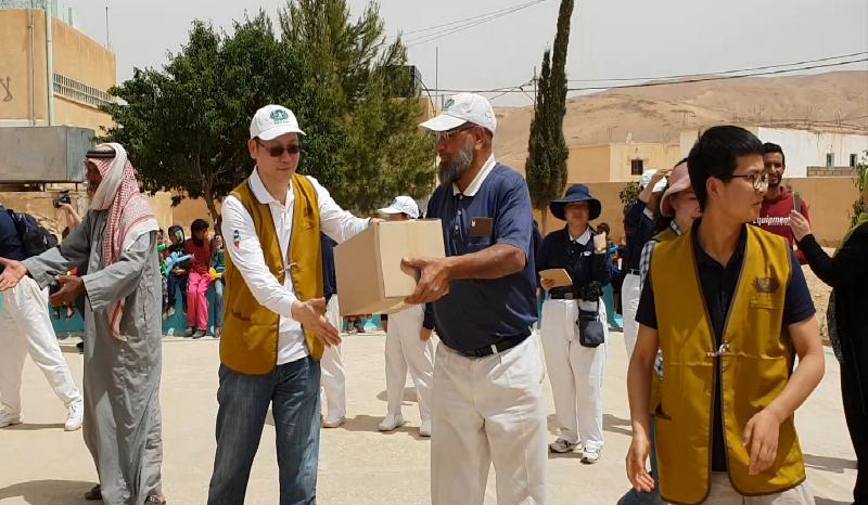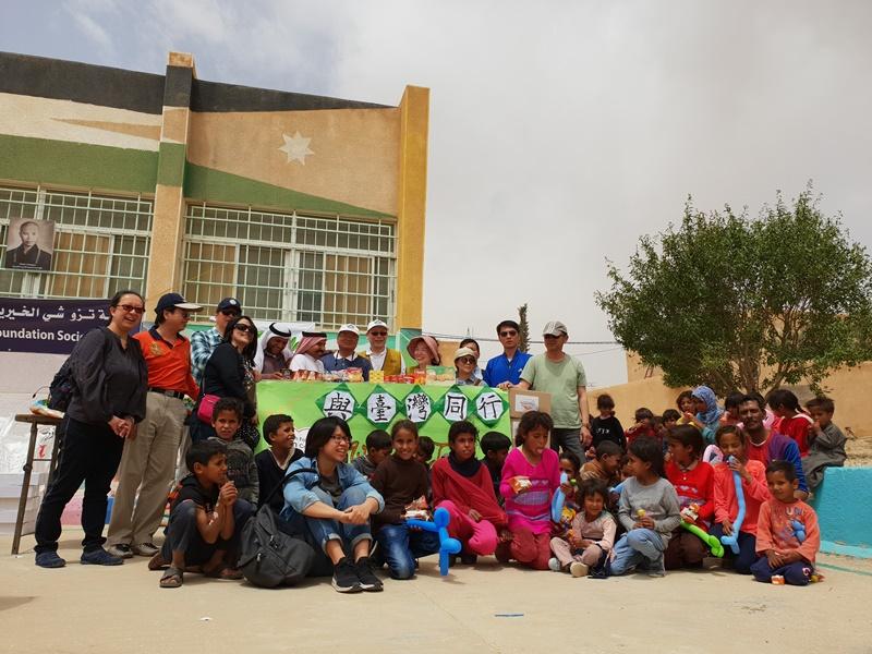 駐約旦代表處與貝都因兒童合影齊心協力搬運物資頂著攝氏37度的高溫?,跋涉300公里路程,我們一如既往,在傳遞友愛與關懷的道路上堅定而執著。108年5月3日有遠道來自台灣的慈濟志工以及許多旅居約旦的台灣僑胞與留學生,為響應「與臺灣同行」活動,?深入約旦南部的Al-Thaghrah沙漠偏鄉,趕在今年伊斯蘭齋月來臨之前將來自臺灣的關懷及物資傳遞到困苦的貝都因人手中。慈濟基金會在此地已經深耕了17年,「德不孤,必有鄰」,在人道援助的路上我們持續不懈,攜手前進。由於駐約旦代表處全體同仁員眷與僑胞及留學生們的共襄盛舉,這天將近100個受到關懷的貝都因人家庭,預計大大小小超過500位以上的民眾,將在齋戒月中受惠於此次擴大規模的物資發放???。除了基本的生活物資,多年來來自臺灣的慈善資源也幫助他們改善了醫療及教育情況。他們回應的一句謝謝,一個感激的眼神,都是我們最大的安慰和持續付出的動力。臺灣人熱情的足跡印在沙漠裡,而他們跨越種族與宗教藩籬的大愛,也留在貧苦貝都因人的心中。在這片最貧瘠的土地上,臺灣人再次用實際行動展現了他們的勇敢與自信,用良善與世界連結,國際社會也終將與臺灣同行。WALK WITH TAIWAN!!!