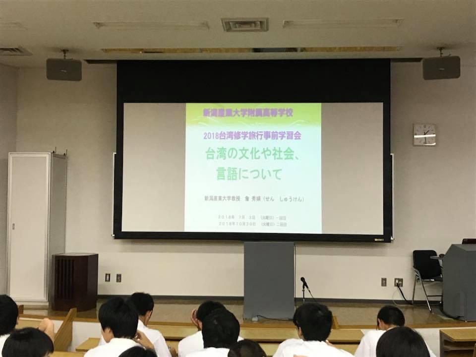 註:新潟產業大學教授詹秀娟應邀出席107年7月3日及10月30日該校臺灣教育旅行事前學習會,以臺灣的文化、社會及語言為題演講。