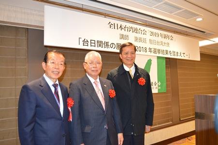 台北駐日經濟文化代表處代表謝長廷於1月27日應「全日本台灣連合會」之邀,在該會所舉辦2019年新年會中,以「2018年大選後台日關係展望」為題發表演講。