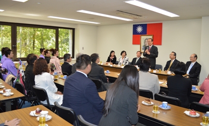 台灣雲林縣環球科技大學學術交流訪日團及台日文化藝術協會林汶玲常務理事主持之玲蘭日本舞蹈團於本(4)月23日拜會駐日本代表處,駐日代表沈斯淳表示熱烈歡迎之意。