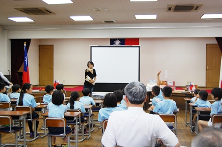 本(8)月5日馬英九總統夫人周美青女士拜訪橫濱中華學院,向學童以「講故事」方式,介紹王羲之等迄今聞名的書法家與作品創作的逸事,學童們聽得津津有味。