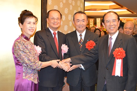 左より沈斯淳・駐日代表夫妻、平沼赳夫・日華議員懇談会会長、 大橋光夫・交流協会会長