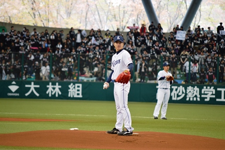 西武獅先發投手為今年剛入隊的台灣選手郭俊麟。他剛拿下3月29日、4月5日兩場勝投,適逢「台灣日」活動,全場球迷給予郭俊麟熱烈呼聲。可惜西武獅隊以5比9敗給千葉羅德隊,郭俊麟目前戰績為2勝1敗。