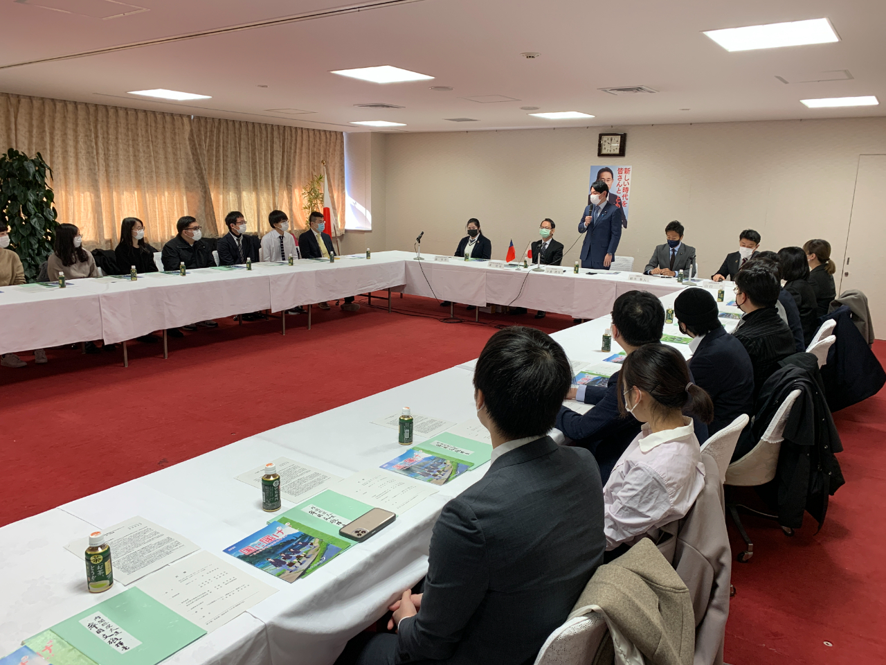 為增進我留學生對日本民主政治的瞭解,並與日本青年政治家深度交流,本處教育組於1月12日上午與日本自民黨青年局舉辦「臺灣留學生與青年局幹部意見交流會」,由教育組偕我21名留學生赴該黨本部出席,日方由青年局局長小倉將信眾議員、國際部部長鈴木隼人眾議員及副部長山口晉眾議員參加。 小倉局長指出,臺日關係密切,相互支持援助,患難中更見真情。教育組黃冠超組長回應表示,臺間相互協助的「善的循環」模式,立下國際關係中的良好典範。意見交流時,臺灣留學生針對臺日關係、國際安全保障及新冠肺炎防疫措施等,提出深入的問題,3位眾議員均一一懇切回復。與會之留學生表示,能與日本國會議員面對面意見交流,深刻體認日本年青政治家之國際視野及學養,收獲良多。會中雙方均同意,臺日青年世代同具有自由、民主及尊重人權的普世價值觀,應透過持續互訪、座談會等交流方式,深化相互瞭解,建立永續友好關係。
