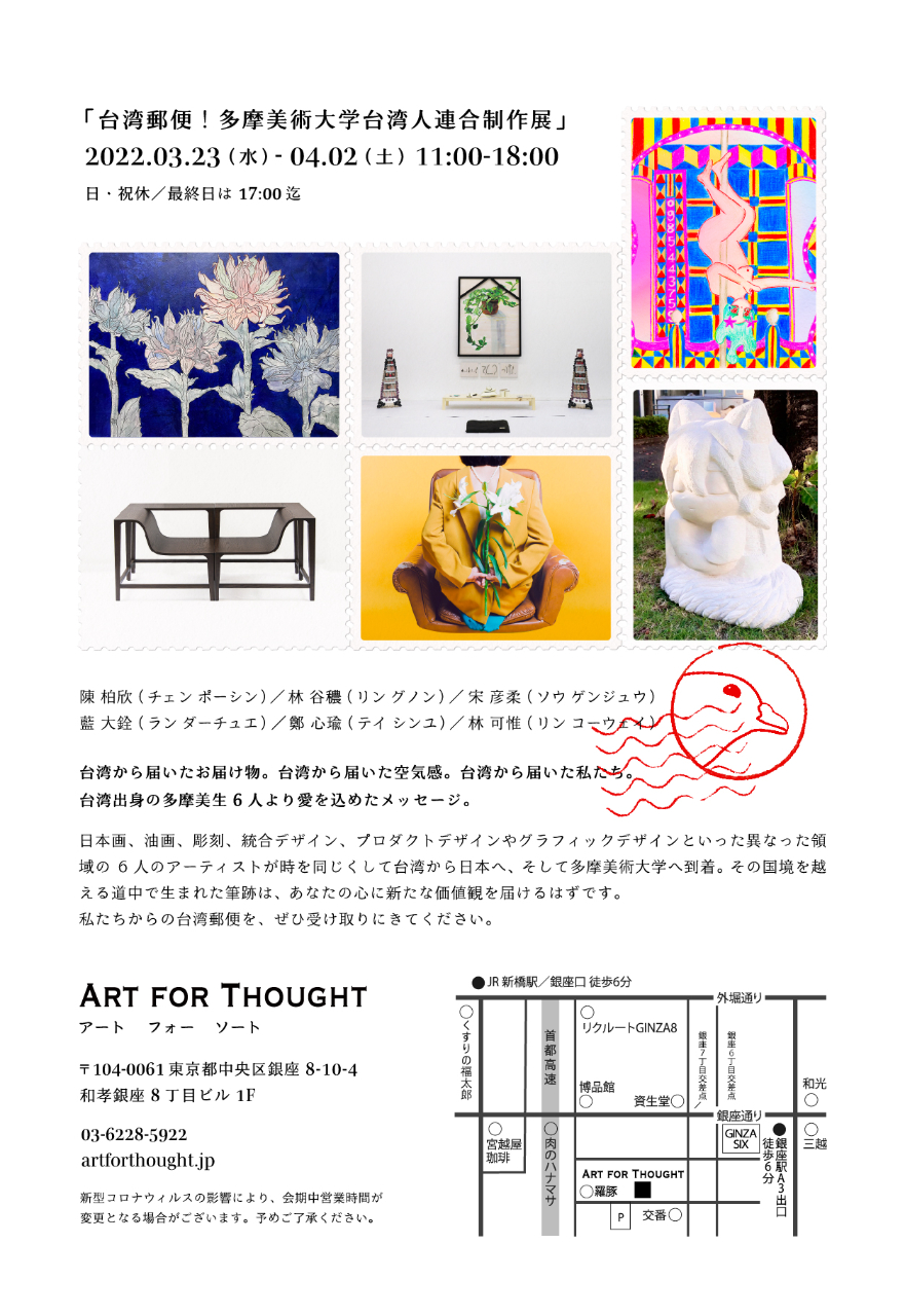 時間:2022年3月23日(星期三)至4月2日(星期六) 11:00-18:00 地點: Art for Thought (〒104-0061東京都中央区銀座8-10-4 和孝銀座8丁目ビル1F、03-6228-5922)