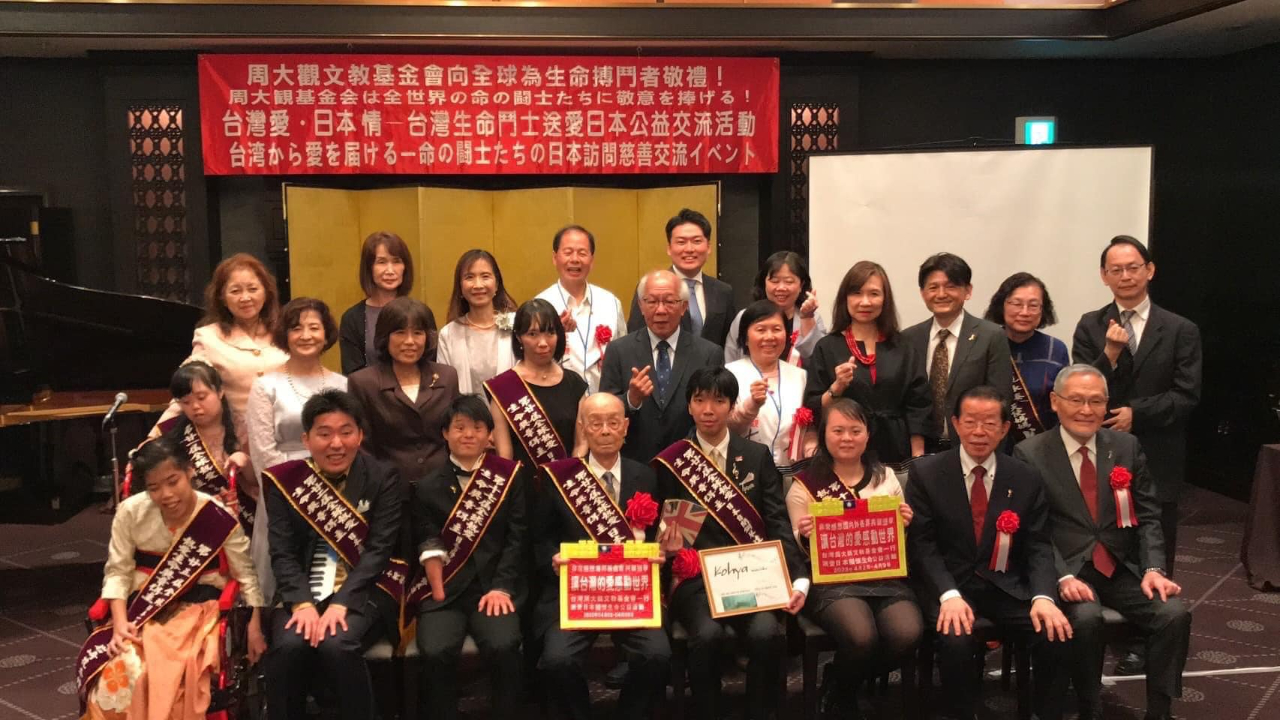 周大觀基金會創辦人周進華先生率臺灣生命鬥士一行11人於本(112)年4月2日至9日訪日,駐日代表處於4月4日與該會合作假目黑雅敘園飯店辦理「台灣愛.日本情—送愛日本公益活動,跨國頒贈「全球熱愛生命獎章」(Fervent Global Love of Lives Award),駐日教育組邀請該獎項過往日籍得主及家屬計15人到場觀禮,並由日籍得主6人及臺灣喜憨天使周以嘉(Chou Yi-Jia)進行現場音樂表演,以音樂傳達生命正面能量。