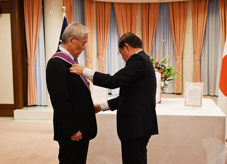 駐日代表謝長廷大使為富士產經集團代表日枝久配掛勳章