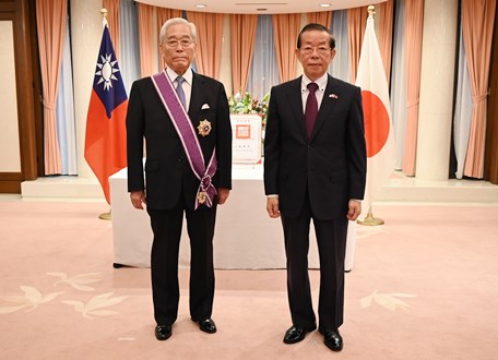 駐日本代表處代表謝長廷大使於本(112)年10月12日代表我國政府頒贈富士產經集團代表日枝久「紫色大綬景星勳章」暨證書,以表彰日枝代表長年來致力推動臺日友好交流與合作的貢獻。
