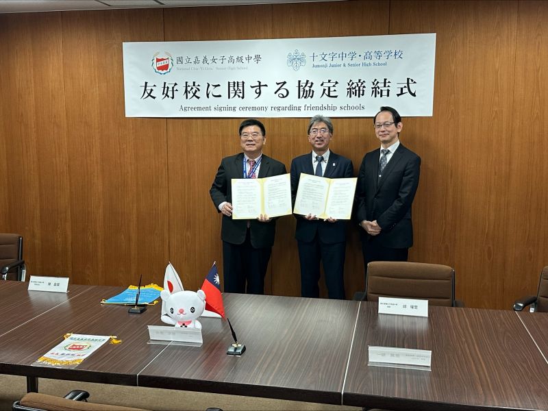 國立嘉義女中與東京豐島區十文字學園十文字高校於本(2023)年12月7日簽署友好學校協議。兩所學校均成立於1922年,同為具百年歷史的女校。 十文字學園經駐日本代表處媒合,於本年8月訪台拜會國立嘉義女中,對該校優秀辦學成效及校園中歷史悠久的建築留下深刻印象,又兩校發展理念相同,十文字高校校訓為「自強不息」,國立嘉義女中為「日新又新」,兩校秉持校訓精神共同合作,象徵校務蒸蒸日上,日新月異,因此國立嘉義女中蔡枳松校長於12月率師生來東京教育旅行時,特赴十文字高校簽署友好校協定,雙方今後將先從視訊交流著手,再拓展到師生互訪研修。