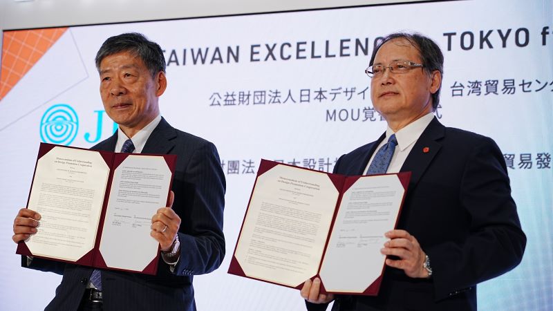 台灣外貿協會秘書長王熙蒙與日本公益財團法人「日本設計振興會」理事長伸野弘行於開幕典禮簽署合作備忘錄。雙方將於未來強化交換知識及經驗、協助設計產業合作、推動有關設計之共同研究及促進商業交流等。