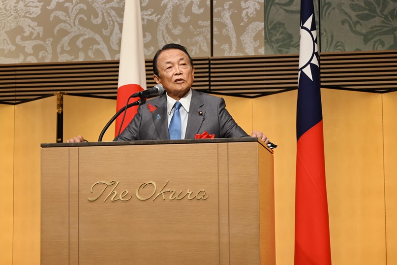 二 李大使致詞 李大使致詞時表示,台灣靠著多年來的努力,克服土地狹小等先天條件限制,目前已獲得半導體產業晶圓代工市占率達世界65%,IC設計及封裝測試居全球頂尖地位、在AI領域扮演重要角色等成就。此外,NVIDIA、Google等世界知名企業都在台灣設立最先進的研發中心,可見賴總統將打造臺灣成人工智慧科技島的願景已經在實現。 李大使續指出中國採取圍台軍演等方式嚴重威脅台灣生存,倘台灣遭中國封鎖,將對全球經濟帶來莫大打擊。感謝民主國家在各國際場域發表聲明,重申台海和平穩定對世界和平不可或缺,並支持台灣有意義參與國際組織。另美英法德等國派遣軍艦航行通過台灣海峽,宣示國際航道有自由通行權,以實際行動支持台灣。台灣將續與日美等民主國家在經濟、科技、安全等領域合作,共同撐起賴總統提倡的「民主保護傘」,讓民主國家免於威權擴張的侵略。 李大使最後提及今年發生花蓮地震,並再度感謝日本政府與國民迅速提供慰問及捐款。 三 與會貴賓致詞 包括日本前首相麻生太郎眾議員、「日本台灣交流協會」會長大橋光夫、「日華議員懇談會」會長古屋圭司、東京國際大學理事長倉田信靖及「日本中華聯合總會」會長羅鴻健等與會貴賓上台致詞時提及台日合作、國會交流之重要性,期許經濟、文化等各方面台日關係繼續發展、更加深化。 麻生前首相指出,台日間雖無正式外交關係,台灣對日本而言是重要的國家,長期以來雙方維持深厚情誼,台海和平對日本亦至關緊要,將持續努力維持台海和平,並維繫台日友好關係。 大橋會長表示,台日共享自由民主等價值觀,相信在賴總統領導下,台日關係能有進一步發展。 古屋會長則稱台日在災害發生時皆能在第一時間伸出援手,象徵彼此友好關係。另指出台日國會外交相當重要,今年將由山東昭子參議員率團訪台參加我國慶慶典,表達祝賀。