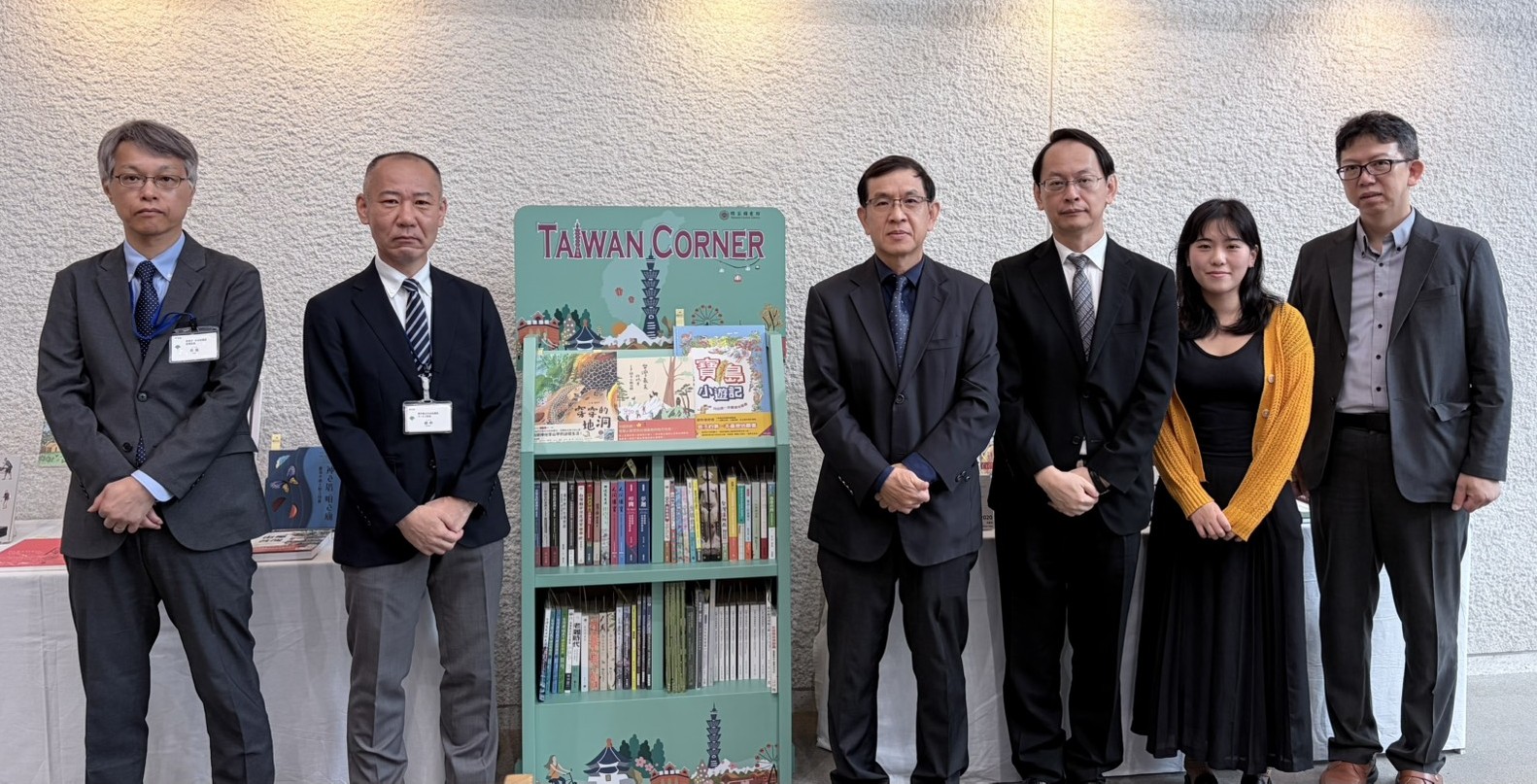 國家圖書館翁副館長誌聰一行3人於2025年9月29日在駐日代表處教育組同仁陪同下,赴東京都立中央圖書館出席捐贈「臺灣書櫃」典禮,受到該館熱情接待。